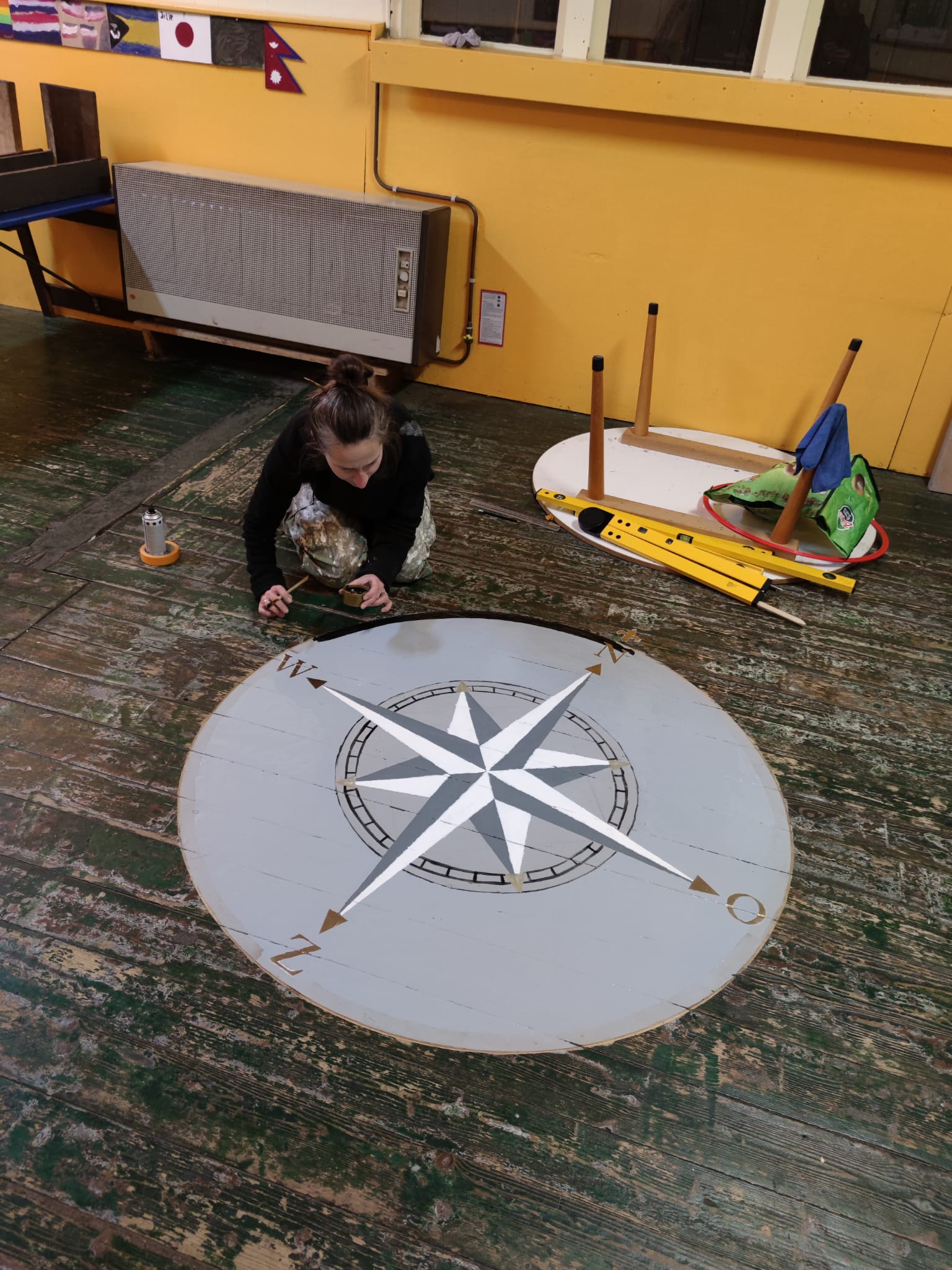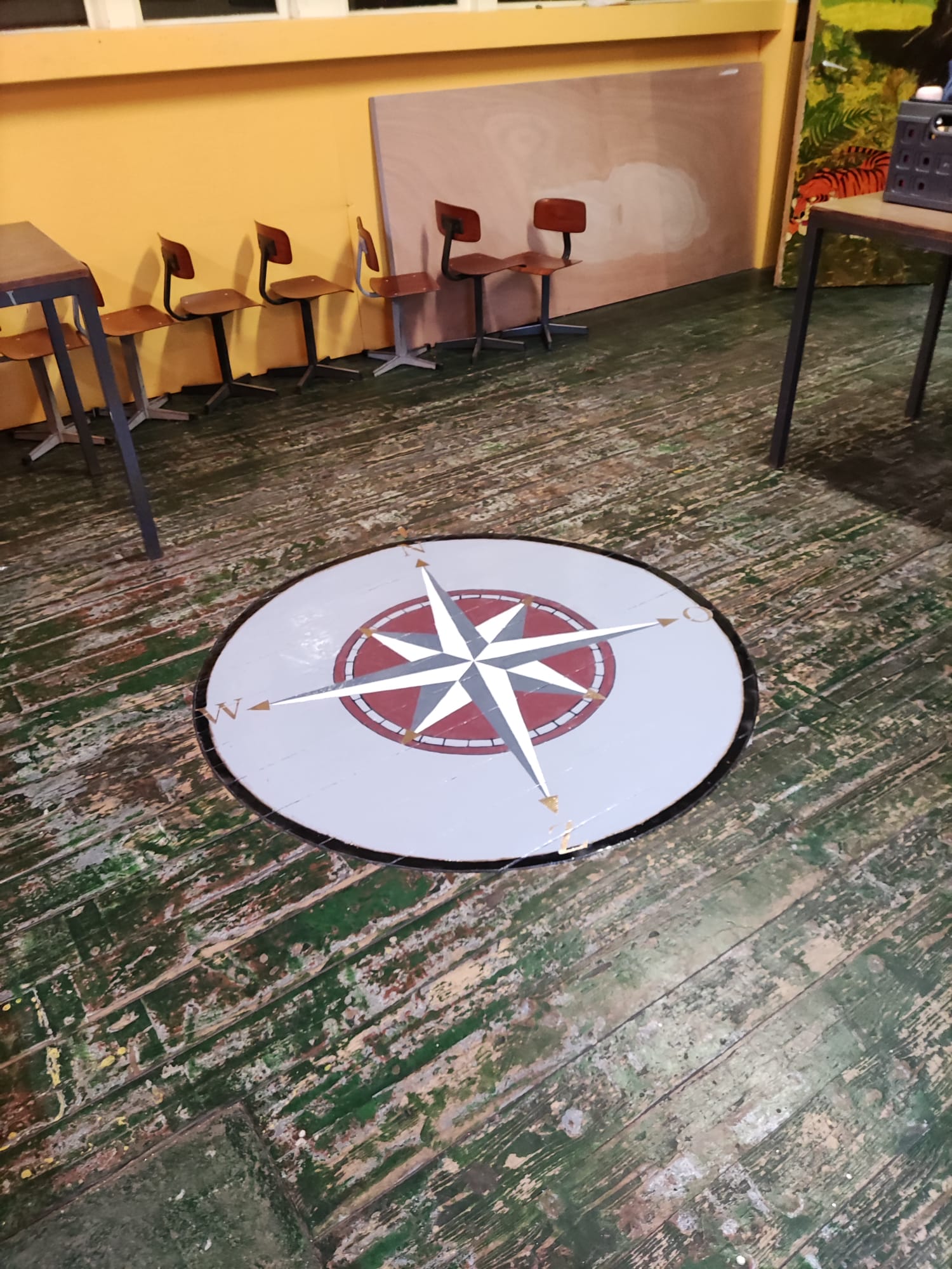 Om bij de scouts te kunnen oriënteren met kompas worden deze skills al bij de welpen getraind. Wat is er dan mooier om een levensgrote kompasroos als kunstobject in de vloer van de blokhut te hebben. Met dank aan Asia moeder van Adam (bevers). Dziękuję Ci