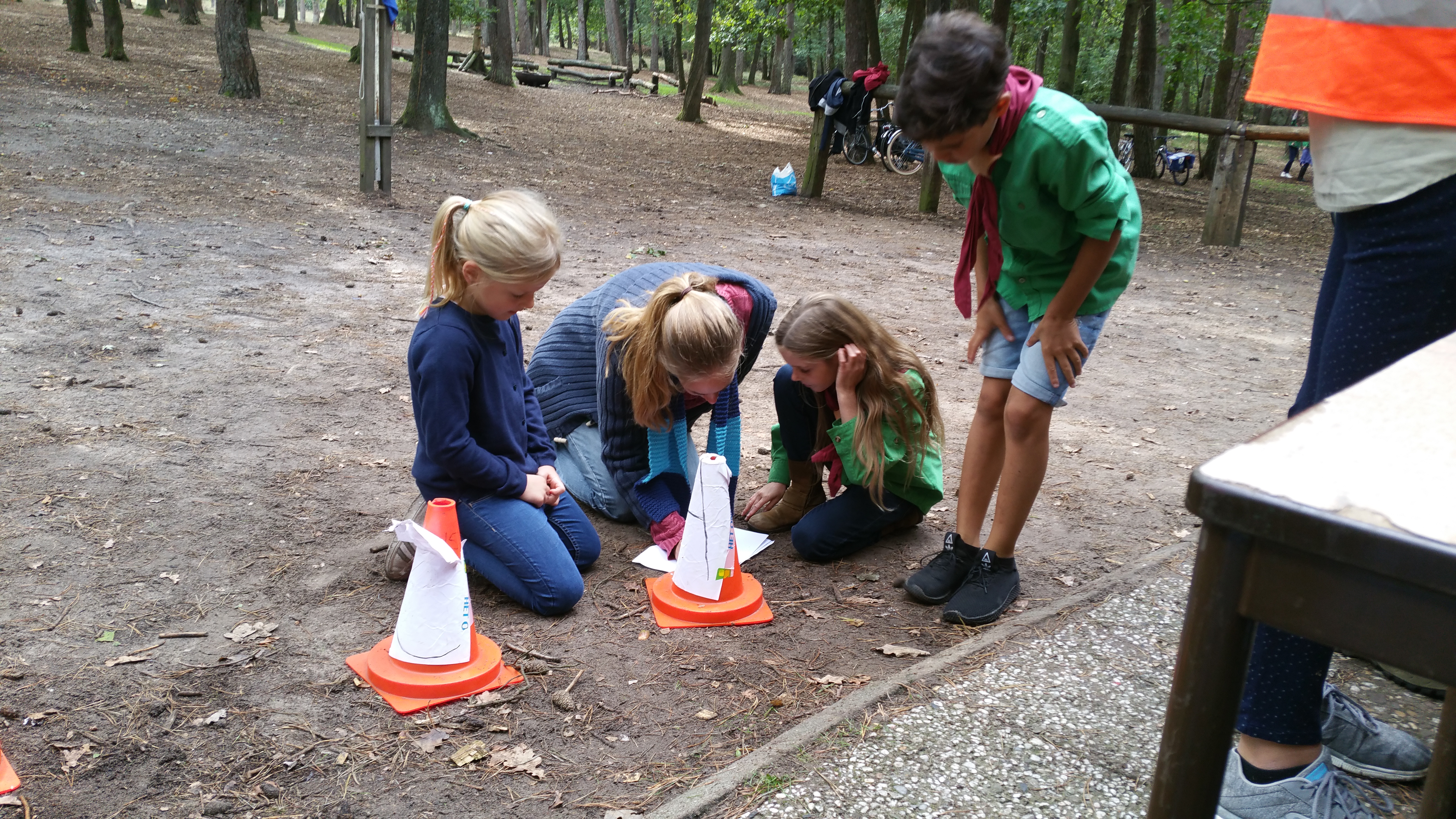 De welpen mochten hulp vragen van 2 leiding, zij moesten bruggen bouwen van bamboestokken en elastieken. De scouts mochten van 1 leiding hulp vragen, en zij moesten driepoten van pionierpalen en touwen maken. De explorers hadden het het moeilijkst, zij mochten geen hulp vragen, en zij moesten de bruggen tussen bomen bouwen, zonder driepoten! Natuurlijk is het iedereen gelukt, en zijn de bruggen gebouwd! Na deze inspanning was het natuurlijk tijd voor een pauze.