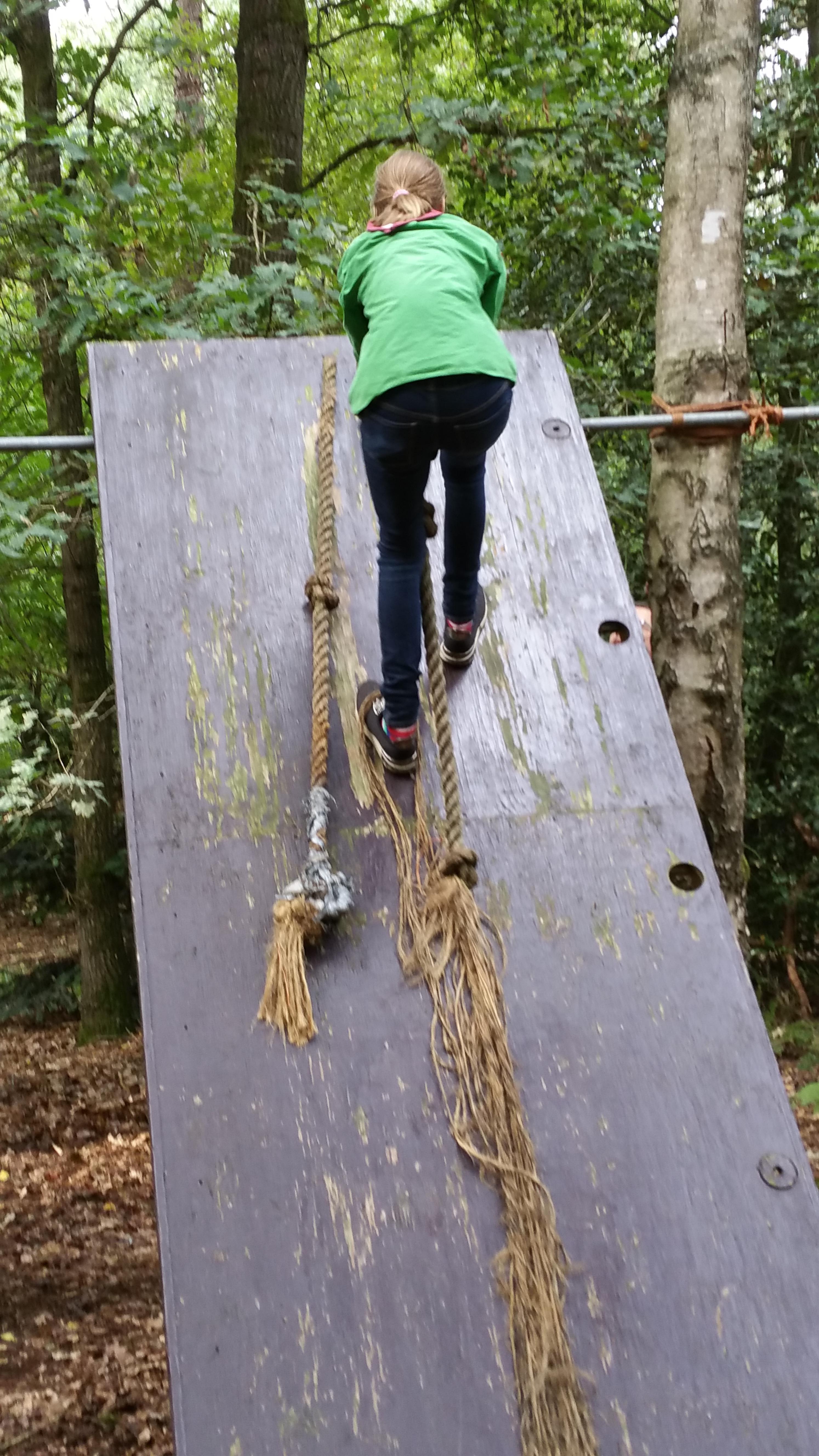 Maar de bruggen zijn natuurlijk niet voor niets gebouwd, het was tijd voor het overvliegen. Natuurlijk vond iedereen het heel leuk om door te mogen naar de volgende speltak, maar voor anderen was het ook wel een beetje moeilijk om gedag te zeggen tegen vrienden. Om over te vliegen naar de volgende speltak moest je over de stormbaan en vervolgens de muur op. Aan het einde werd iedereen opgevangen door de nieuwe speltak.