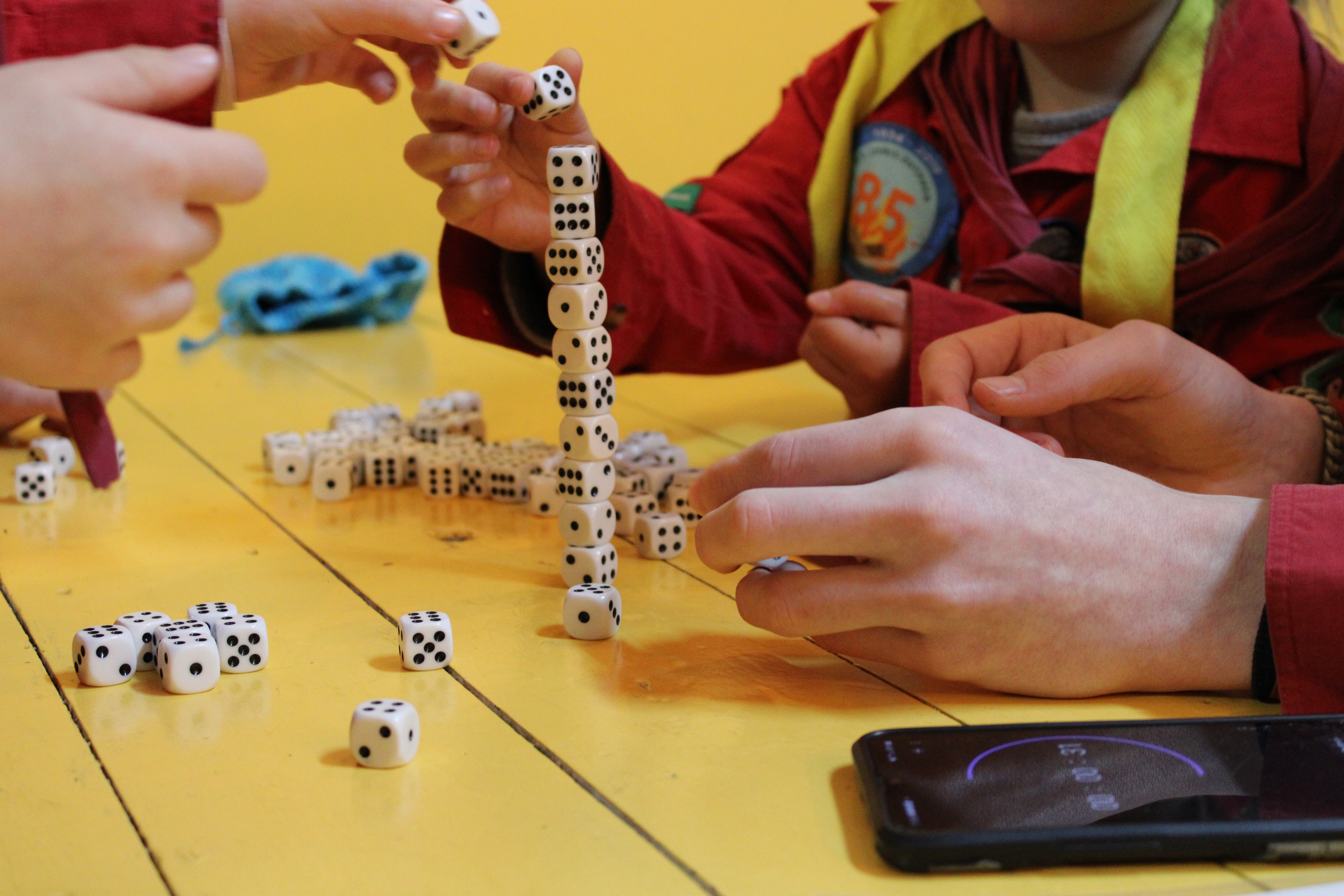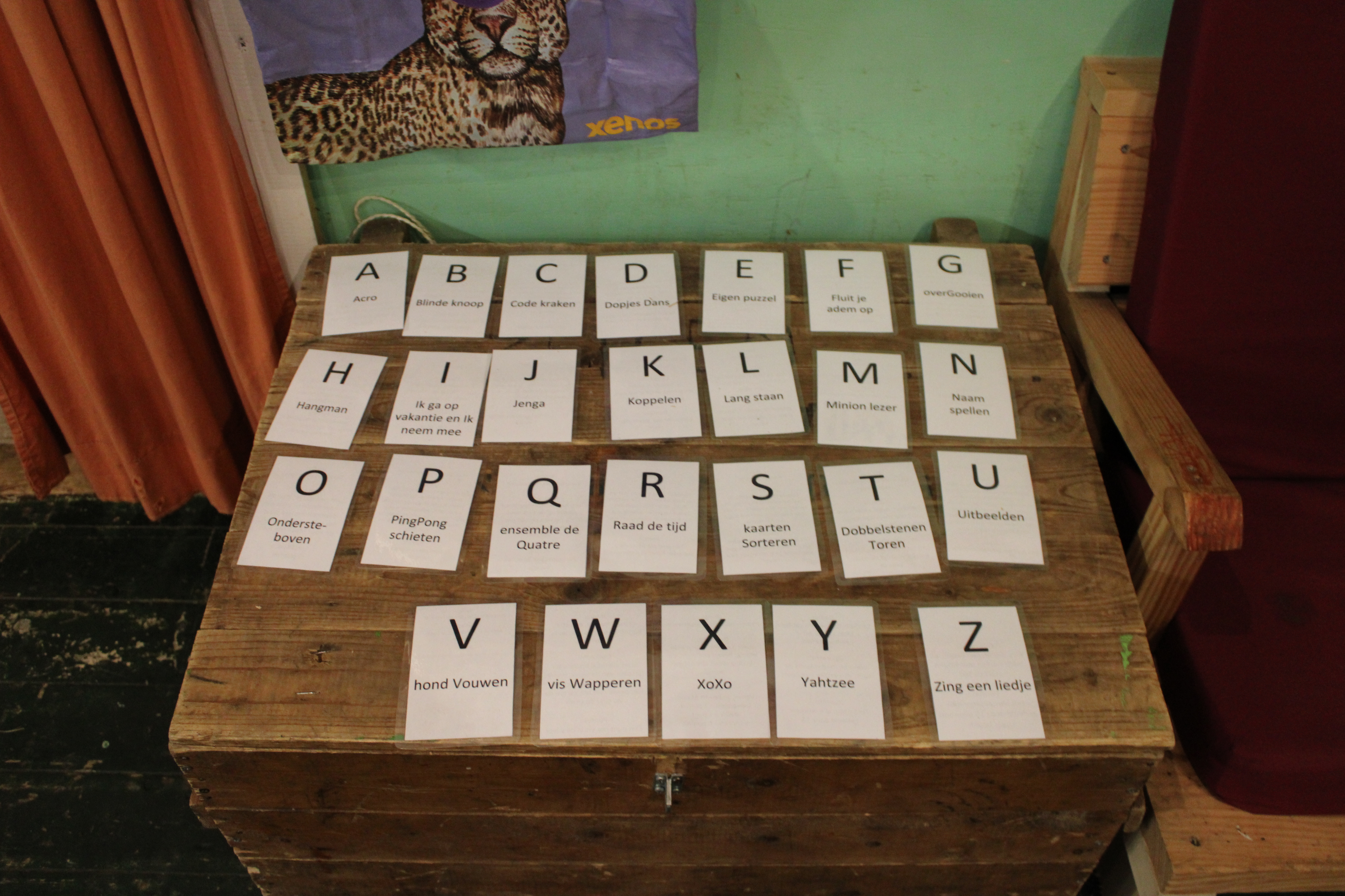 Na het installeren hebben de bevers het alfabet aan spelletjes gespeeld. Waarbij ze bij elk spelletje punten konden verzamelen. Zo konden de bevers telkens zelf een letter kiezen waarvan ze het spelletje wilden spelen. De keuze was reuze, zo was er onder andere: dobbelstenen toren bouwen, knopen maken met de ogen dicht, tellen en op tijd je hand opsteken, een puzzel kleuren, acrobatiek of boter kaas en eieren tegen de leiding.