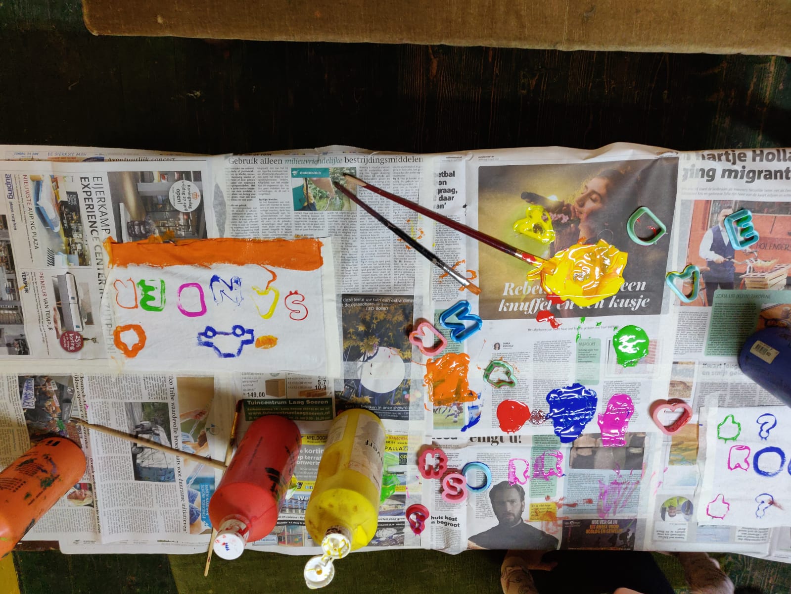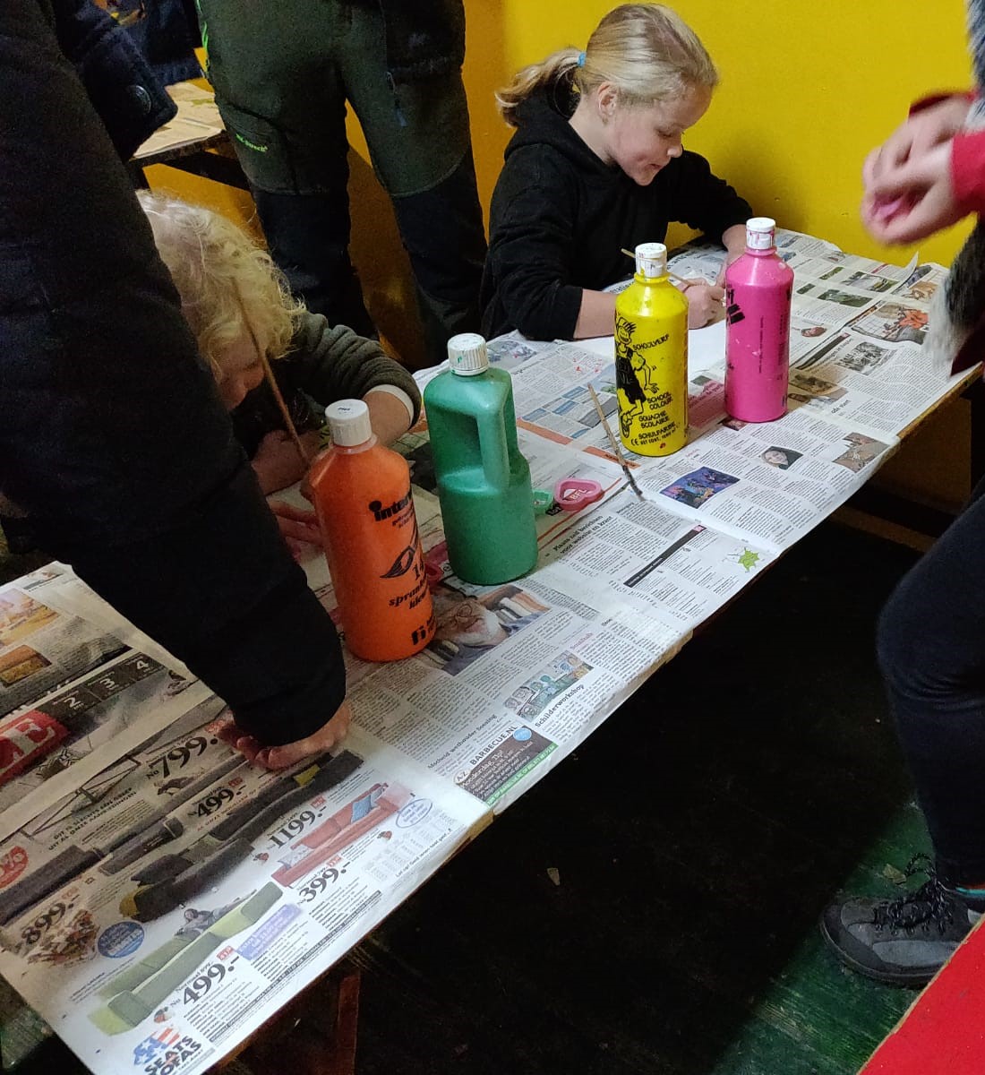 Toen iedereen was uitgerend en de spanning er een beetje af was, was het tijd voor pauze met limonade en een koekje. Iedereen was moe gerend wat ook goed uitkwam! Want we gingen daarna lekker verven. Iedereen heeft zijn eigen naam gestempeld op een vlaggetje die we later gaan gebruiken, zodat de Bevers hun eigen vlag kunnen hijsen en iedereen weet wie er aanwezig is. Er werden mooie kunstwerken gemaakt.