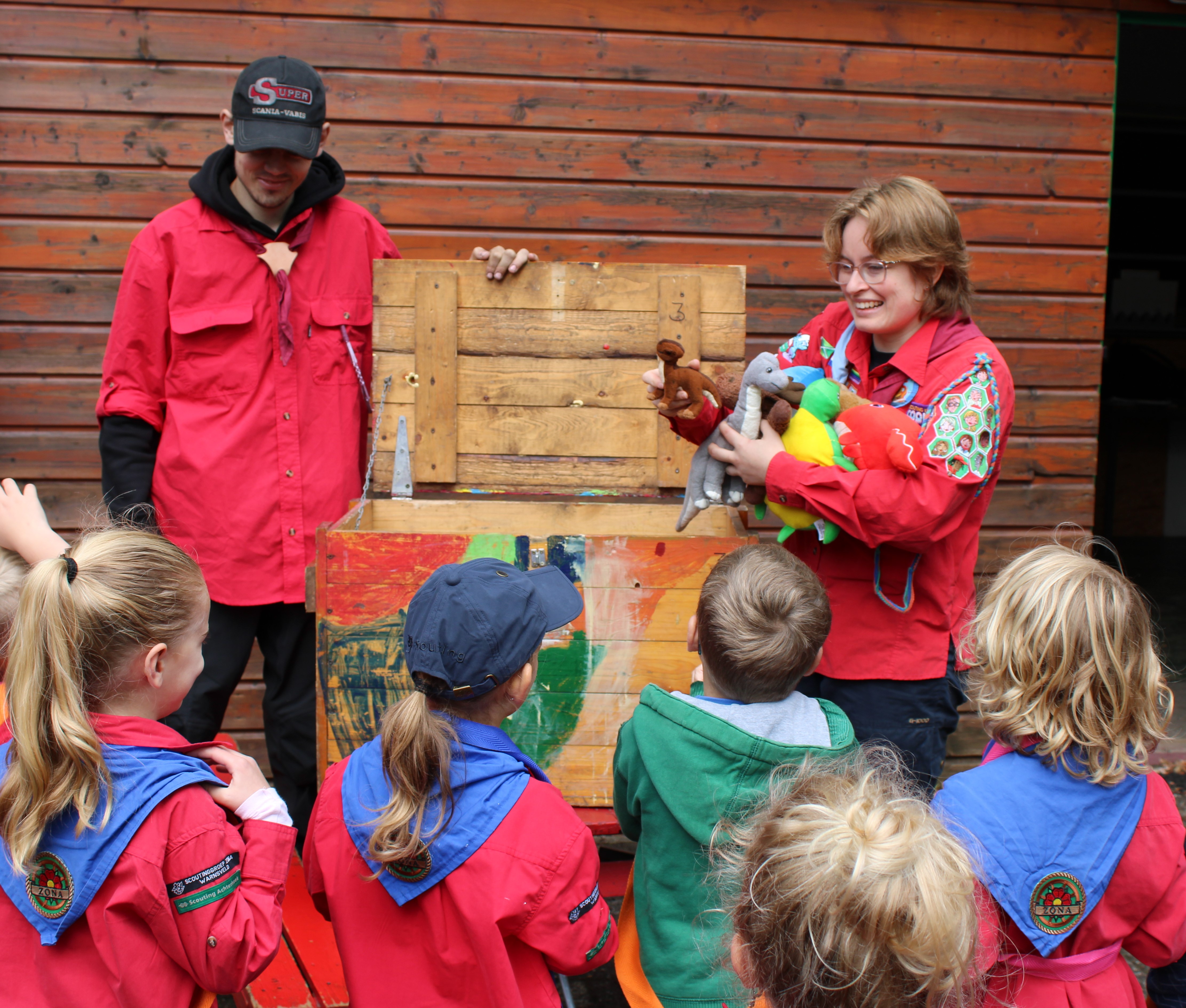 Bas en Rebbel zijn wezen wandelen. Maar tijdens deze wandeling kwamen ze een kist tegen. Uit die kist hoorden ze gekrabbel, gepiep en ander zacht dierlijk geluid komen. Toen de kist weer in Hotsjietonia stond hebben we met zijn allen om de kist gestaan en toen zagen we het pas. Er zat een codeslot op de kist. Stanley wilde al naar zijn gereedschapskist gaan om het slot te slopen, maar dat vond Sterre een slecht plan. Gelukkig wist zij Stanley ervan te overtuigen dat het beter was om het slot op een andere manier te openen. Rozemarijn kwam op het idee om de bevers aan het werk te zetten. Ze moesten samenwerken om zo veel mogelijk punten te halen. En dat hebben alle bevers met veel enthousiasme gedaan. Olifanten zijn gevouwen, er zijn dierensporen gezocht, dieren uitgebeeld en de dierentuin gered bij het spel Keer op Keer. Tot slot konden Sterre en Stanley alle dieren uit de kist bevrijden.