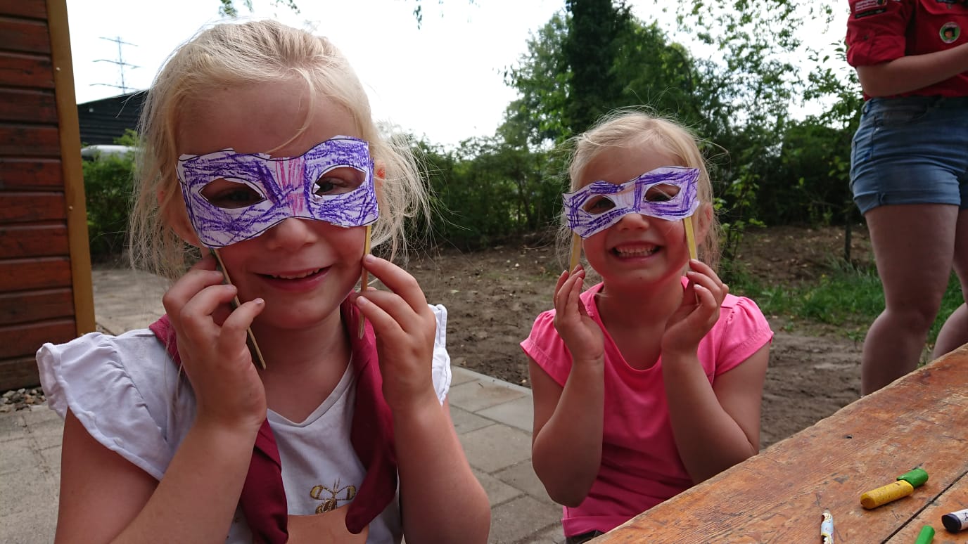 Na de pauze was het tijd voor een wat rustigere activiteit, dus we gingen lekker aan de knutsel. Iedereen kreeg een masker die ze zelf moesten uitknippen en inkleuren. Daarna nog twee mooie stokjes erachter en klaar! Het was net het gemaskerd bal, dus dat verdiende een mooie groepsfoto!