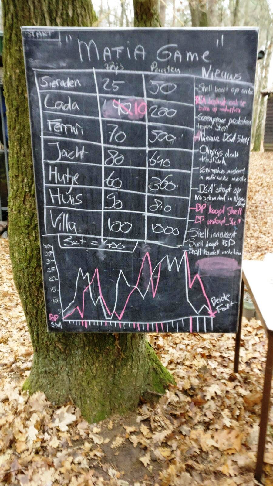 Elke zaterdag is het weer feest. De Explorers halen alles uit de kast om een leuk programma in elkaar te zetten. Vandaag het aandelen spel. De aandelen Shell en BP waren zeer gewild. Echter GreenPeace gooide roet in het eten. Lars, MJ & Niels