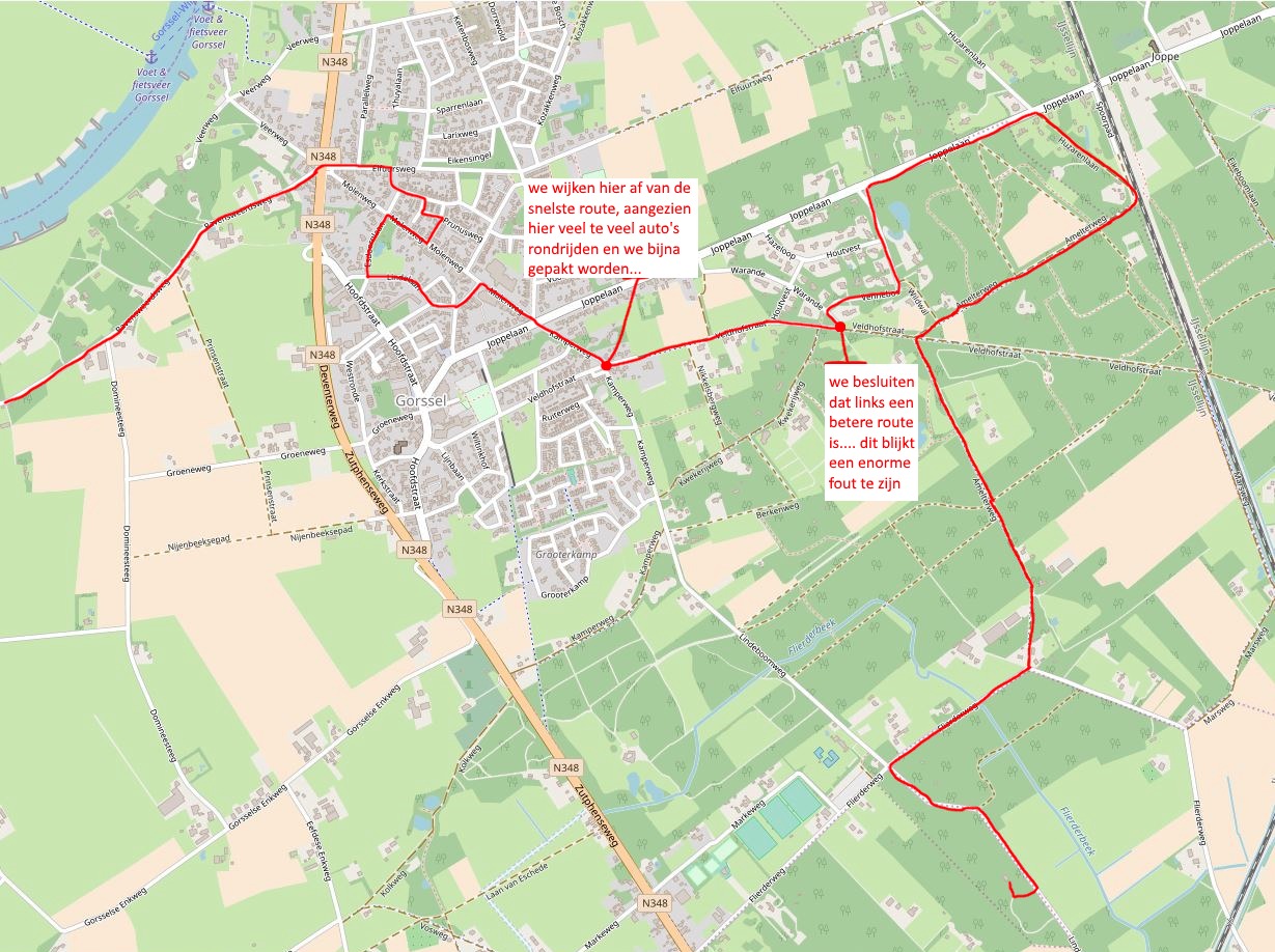 Er waren 4 groepen onderweg. Lars heeft 1x een groep gespot, Tim helaas niet. Dat 1 groep wel heel ver gaat, blijkt uit de gelopen route die op het kaartje is zien. Bij terugkomst in de blokhut vielen een aantal als een blok in slaap.