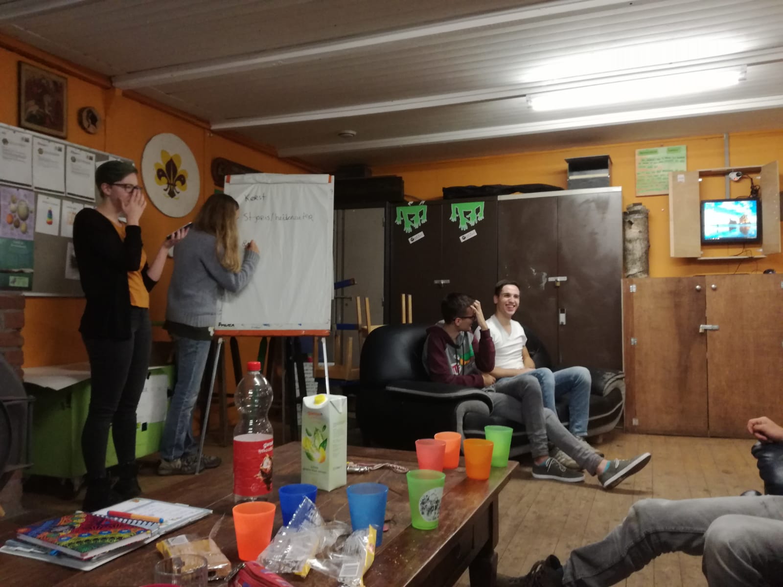 Er zijn dit jaar behoorlijk was RSA overgevlogen naar de Rovers! Even was het de vraag of de oude Rovers door zouden gaan als 'Stam' (een nóg oudere speltak ;) en deze RSA de nieuwe Rovers zouden worden maar afgelopen vrijdagavond hebben we besloten dat we voorlopig gezellig als één groep draaien! Er moest behoorlijk was besproken worden dus deze eerste opkomst was vooral een vergadering. We hebben ook gelijk een voorlopige (half)jaarplanning gemaakt. Natuurlijk was het wel lekker om ook nog even een simpel spelletje te doen. Cilia en ik (Sietske) hadden bedacht om levend te kwartetten (maar dan deze keer met drie kwartetten die uit 4 totaal verschillende voorwerpen bestaan om het moeilijk te maken) maar helaas kwam het met bakken uit de lucht en was het bovendien al 9 uur en dus pikdonker. Natuurlijk lieten wij ons hierdoor afschrikken en besloten we binnen te levend kwartetten! Ieder team kreeg kort de tijd om een bunker te bouwen om de stukjes kwartet die je aan het begin krijgt te beschermen. Helaas, toen het spel eindelijk kon beginnen bleek iedereens bunker zo ondoordringbaar dat er niets gestolen kon worden. Gelukkig kon iedereen klagen bij scheidsrechter Cilia over hoe oneerlijk dit wel niet was en moest iedereen zijn bunker toegangkelijker maken. Ditmaal werden er wel enkele items gejat uit andermans basis. We zullen alleen nooit weten wie er gewonnen heeft wegens gefraudeer met de kwartetitems. (Zoals bijvoorbeeld het bekerkwartet dat verzameld bleek te zijn uit de keukenkast)