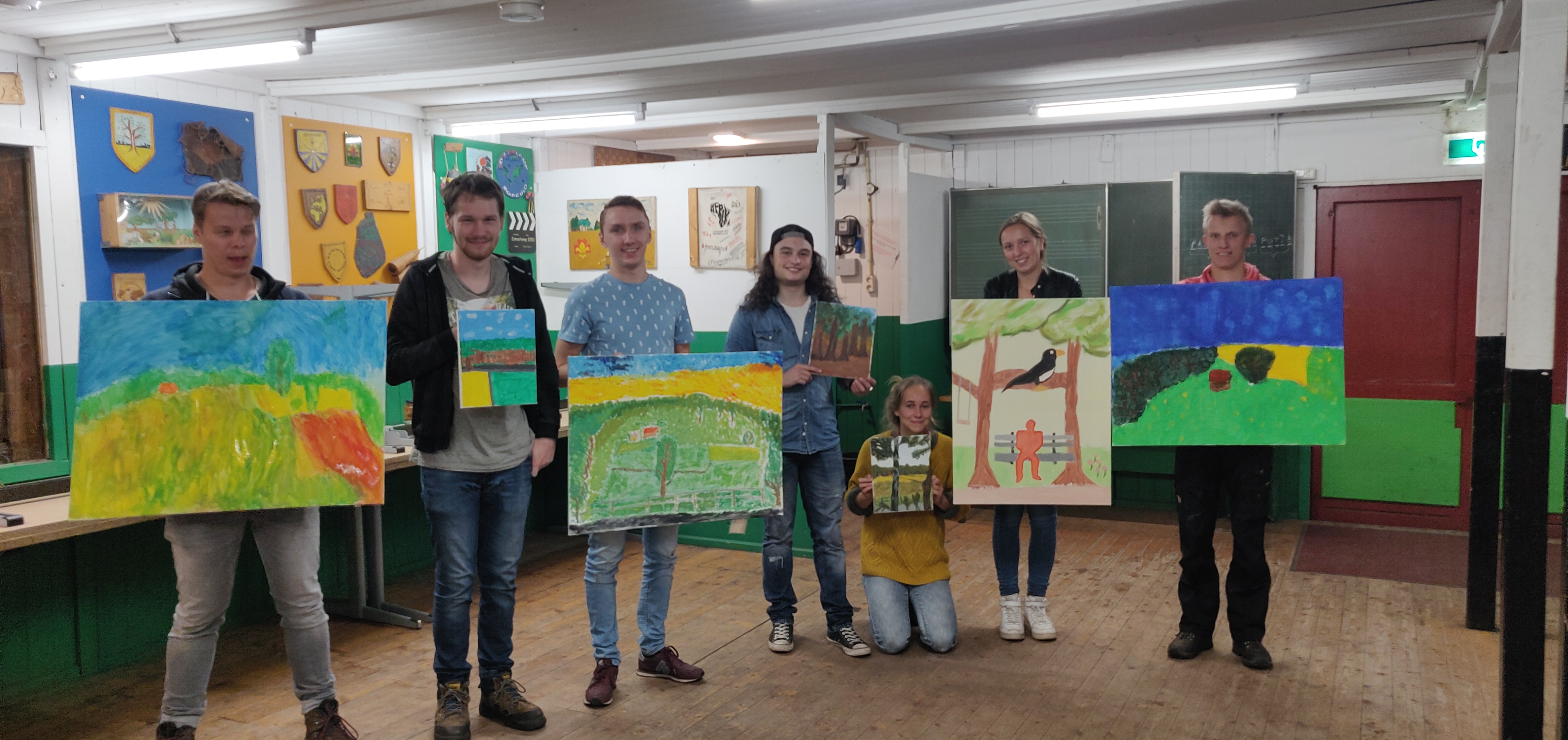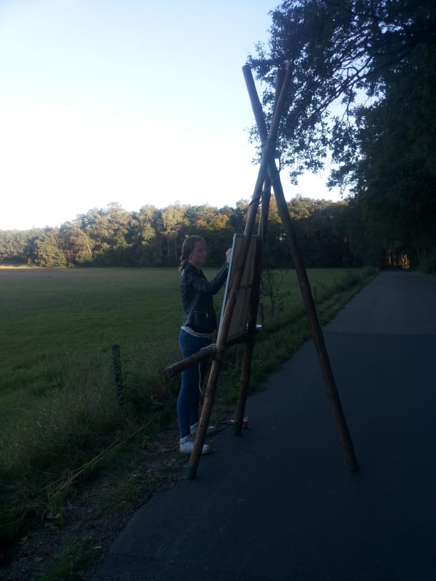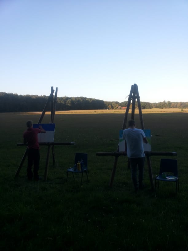 Zaterdag 21 september hadden wij als Rovers de eerst opkomst van het nieuwe Scoutingseizoen. Dit keer gingen wij onze schilderskunsten uitdrukken op een textiele doek. Eerst moesten we een schildersezel pionieren. Vervolgens hebben een aantal van ons de horizon opgezocht. Met de instructies, inspiraties, uitleg van Sietske in ons achterhoofd werden de eerste penseel streken gezet. Het resultaat………..