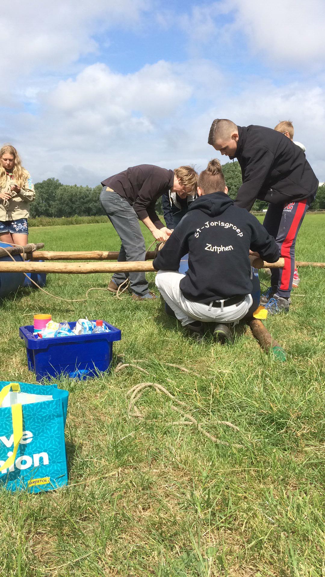 ...is wat de scouts waarschijnlijk (met enige zekerheid, eigenlijk..) dachten toen ze zaterdagochtend aan de Berkel stonden om 9:45 uur. Als we het in de woorden van de scoutsleiding zouden uitdrukken: 'Het is niet het mooiste weer maar is ook zeker niet slecht' :). Met deze input gingen de scouts aan de slag met het pionieren van een vlot.