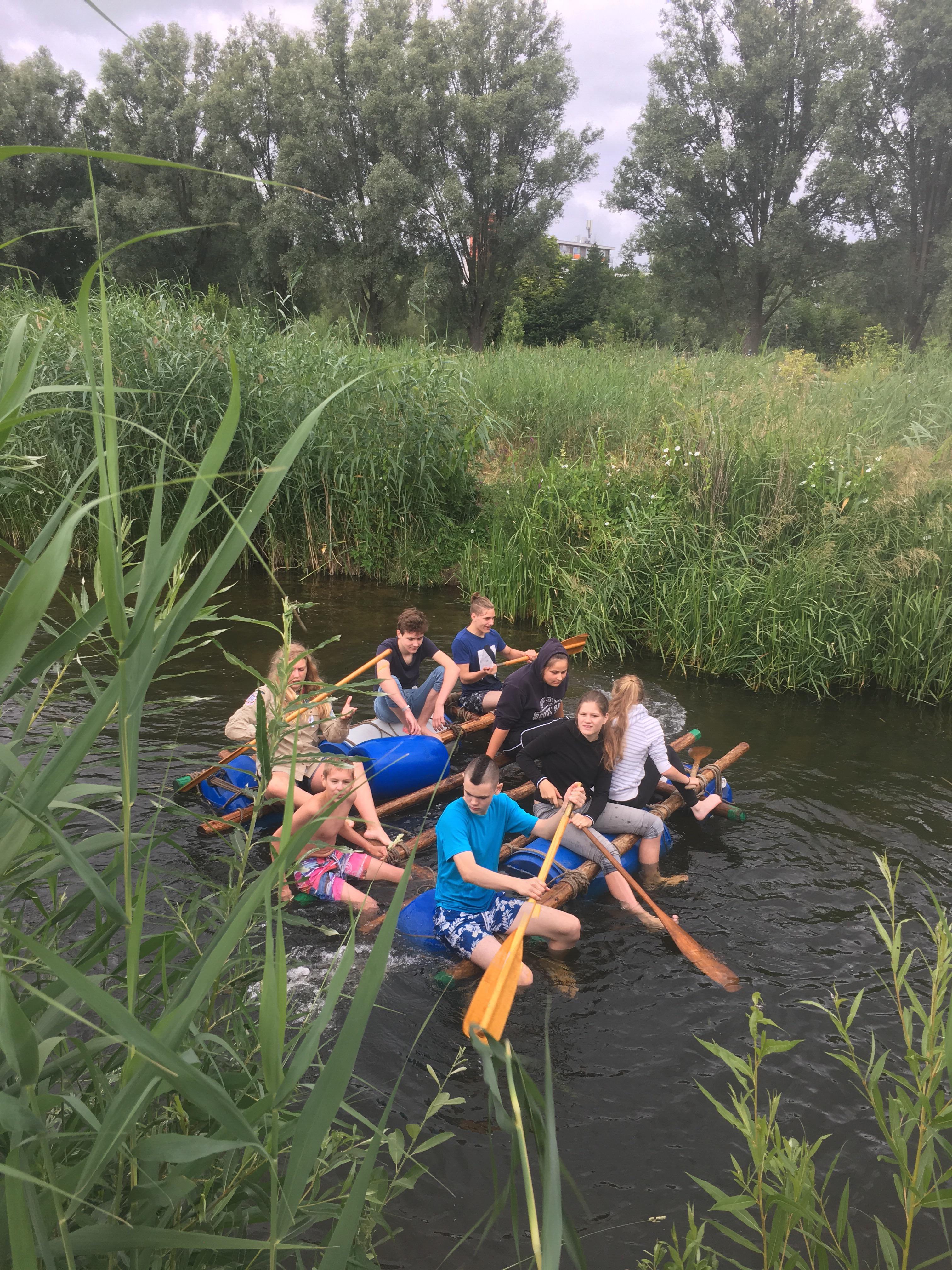 Na een stukje gedobberd te hebben naar het midden van de Berkel (Lees: 10 meter :)) vonden de Scouts dat hun Thor Heyerdahl-missie erop zat. Voor je het weet, stonden ze allemaal weer op de kant te kijken naar het vlot dat zich tot nu toe erg goed hield! Toch konden enkele scouts de verleiding niet weerstaan, niet veel later was het vlot weer goed gevuld en voer het vlot een behoorlijke afstand stroomopwaarts. Al met al was het in de ogen van de leiding een geslaagde opkomst, volgens mij vonden de scouts dat stiekem ook wel ;)