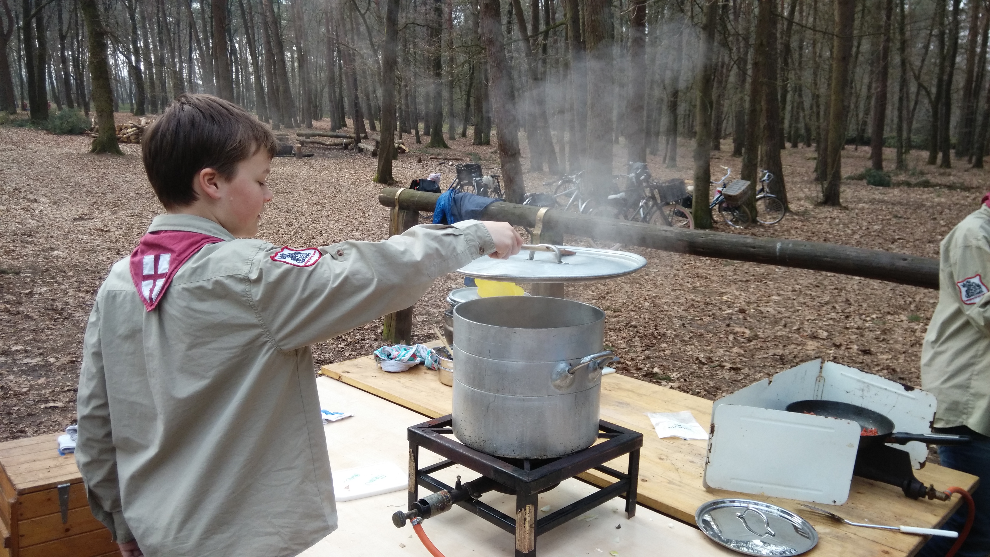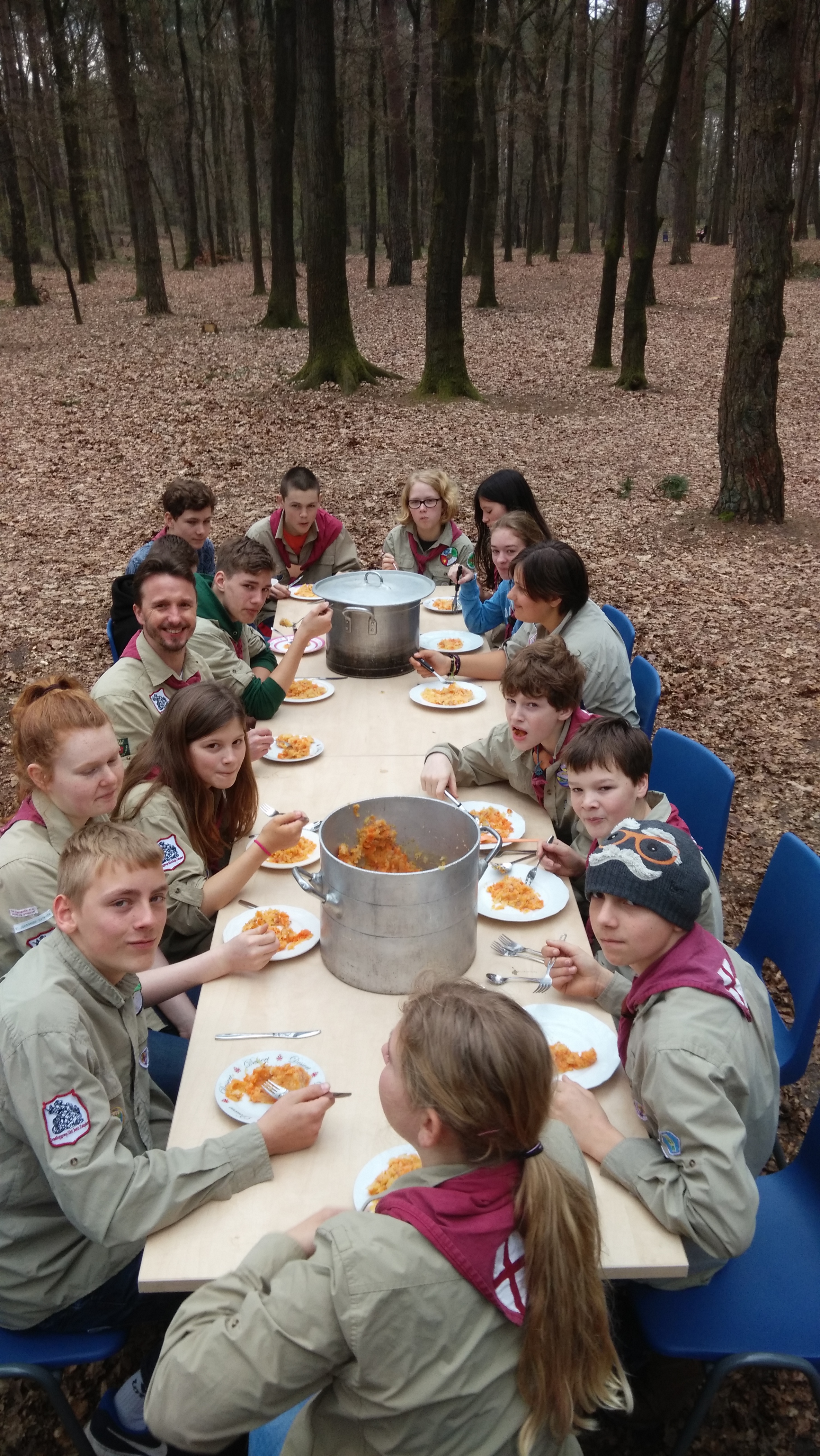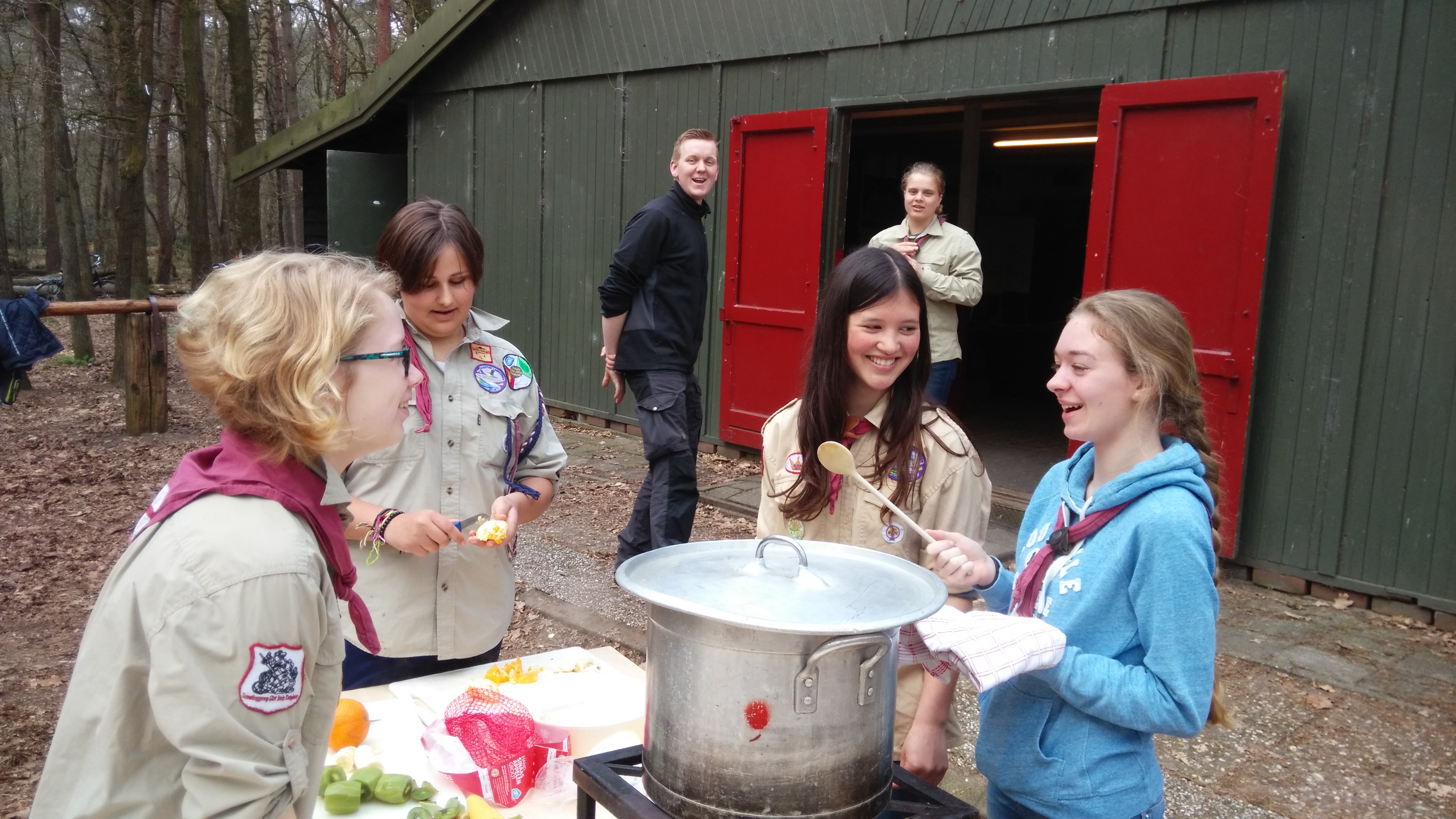 De opkomst op 1 april stond in het teken van de voorbereidingen rondom de Scoutingwedstrijden. De scouts die zich hadden opgegeven om deel te nemen aan de Scoutingwedstrijden hebben de taken verdeeld en zelf een heel toneelstuk script geschreven voor hun thema presentatie. Verder is het idee gevormd om de avondmaaltijd die tijdens de Scoutingwedstrijden gekookt gaat worden een keer te proberen. Voorafgaand aan dit idee ging een heel democratisch proces van het elimineren van groente en fruit om tot het daverende eindresultaat te komen! De keuze voor de maaltijd is namelijk gevallen op .. ja! Hutspot!