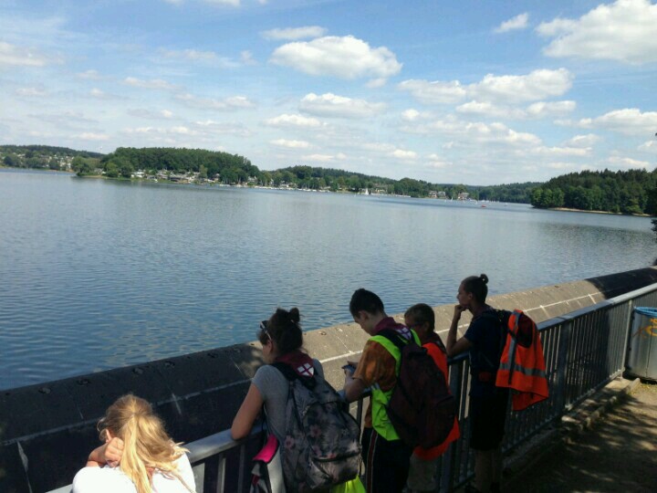 Op zondagochtend mochten de scouts rustig opstaan en ontbijten. Het ochtendprogramma vond gewoon plaats in de blokhut op het kampterrein en bestond uit mini-pionieren. Met behulp van dun hout en touw konden ze een keuken of ander object pionieren. Er werd fanatiek gestart met het zagen van het hout in de juiste verhoudingen en lengtes. Het knopen zelf bleek een heel gepriegel te zijn tot frustratie van sommige scouts. Na zo’n 2,5 uur zagen en knopen mochten de resultaten er zeker zijn! ‘s Middags vertrokken we met de 2 busjes naar de Bevertalsperre, een groot stuwmeer waar we gingen zwemmen. Op het menu voor het avondeten stonden pannenkoeken en bij terugkomst op het kampterrein werd er dan ook direct begonnen met bakken. Het eten en afwassen ging echter veel sneller dan de leiding van tevoren had gedacht, waardoor er een klein gat in het programma ontstond. Dit werd echter snel gevuld door een fanatiek potje slagbal op het nabijgelegen grasveld (waar we eigenlijk niet op mochten, bleek later). Na een pauze van een klein uurtje, werd gestart met het avondspel: een smokkelspel. De scouts bleken al behoorlijk moe te zijn, waardoor we het spel niet helemaal hebben afgemaakt. Rond 12 uur was het klaar en konden de scouts lekker naar bed. Helaas had Eduard rond 20 uur een telefoontje van zijn werk gekregen dat ze hem nodig hadden in Rotterdam en dus moest Eduard het kamp verlaten. Hij is ook niet meer teruggekomen, doordat hij hierna ziek is geworden en dus hebben de scouts het de rest van het kamp met drie leiding gedaan.