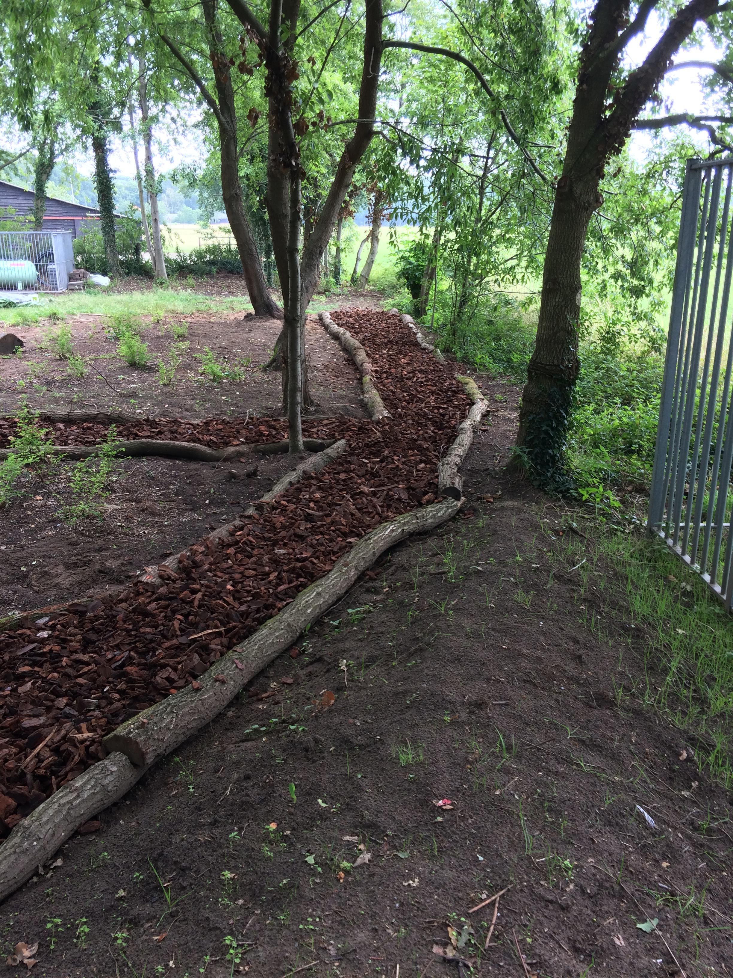 Toen in de jaren 80 de Padvindsters van de Schildragersgroep op ging in de St Jorisgroep werd ook de blokhut en het 1200 m2 terrein overgenomen. Het terrein werd door overvloedige begroeiing kleiner en kleiner, speelplaats werd een enkelbreker, vuurplaats stond op instorten tijd voor een project. Omdat het buitenterrein volledig op de schop ging waren de speltakken eigenlijk niet gewenst. Geholpen door Corona (geen opkomsten), Hemelvaart en Pinksteren heeft het vaste onderhoudsteam met ad-interim projectleider Niels (Hovenier in opleiding) deze klus op 1,5 meter geklaard. Met 7 personen in 28 dagen, 337 manuren en een paar duizend euro armer is het project afgerond. Marc, Hans, Eddy, Otto, Ron en Niels bedankt! Op naar het volgende project...........