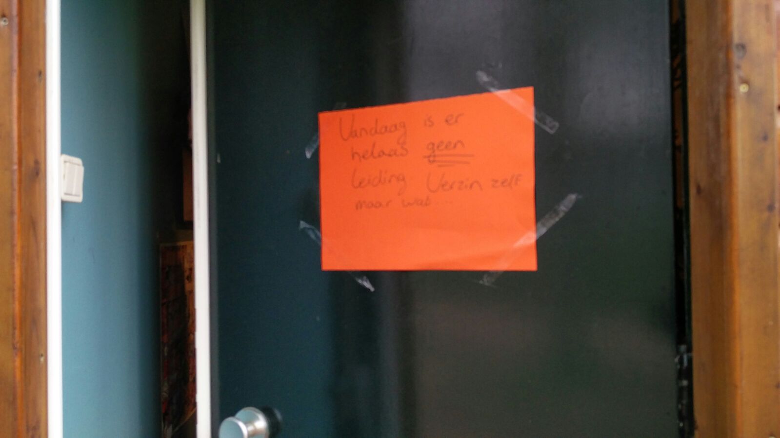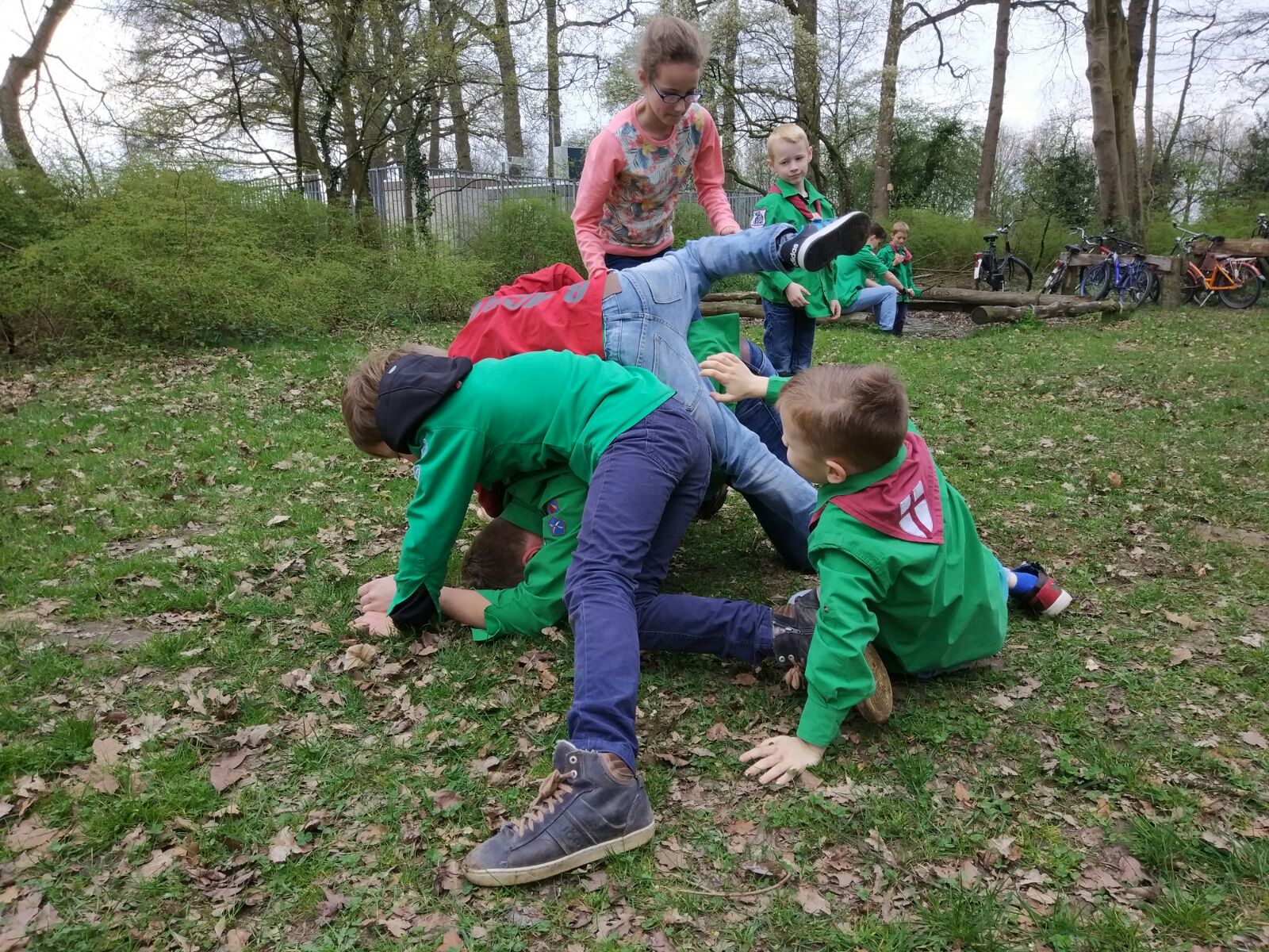 Deze zaterdag was het 1 april en de leiding kon het natuurlijk niet laten om een grap met de welpen uit te halen. We hebben snel onze fietsen binnen gezet en een brief op de deur geplakt met de tekst: ''Er is vandaag helaas geen leiding. Verzin zelf maar wat!'' Gelukkig kon iedereen er om lachen.