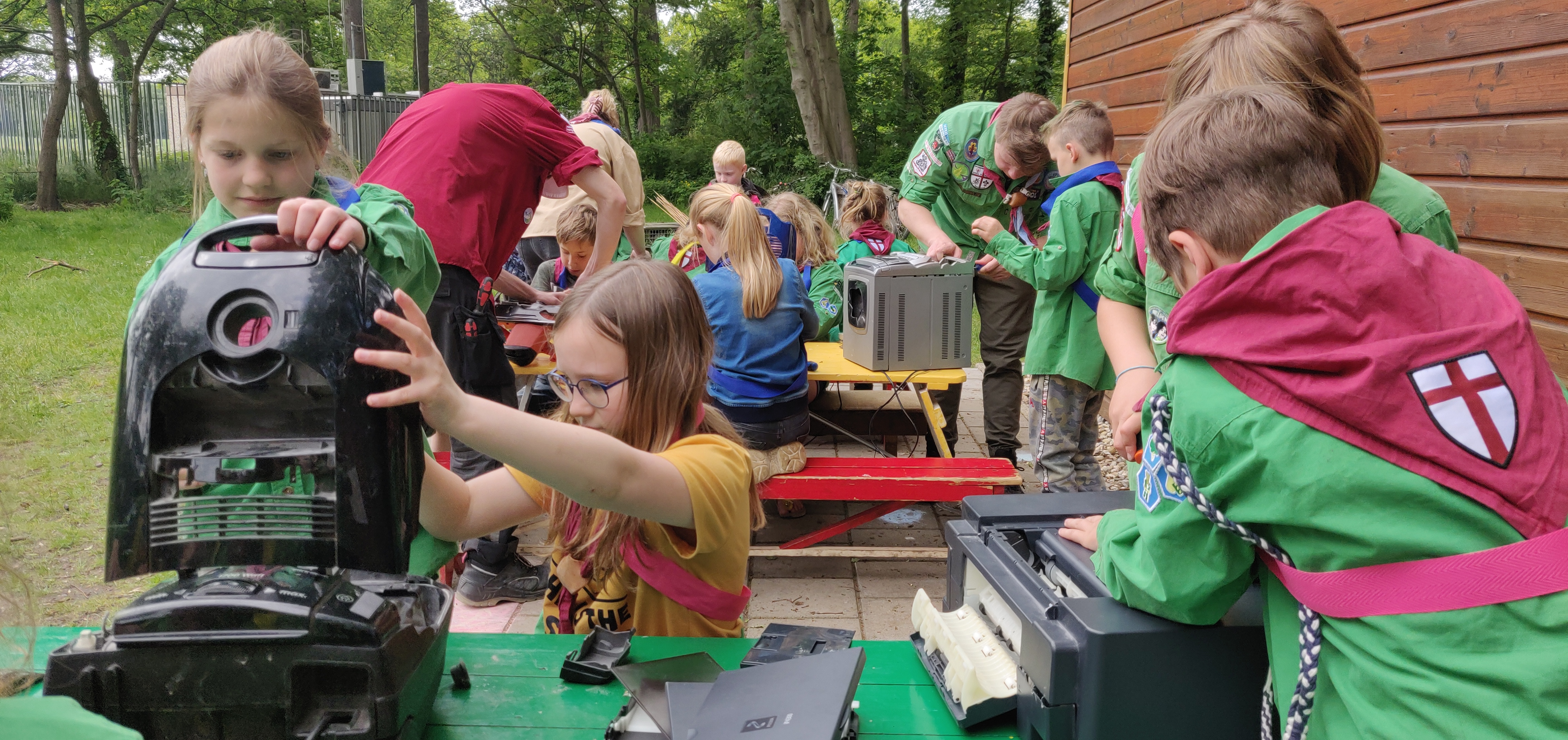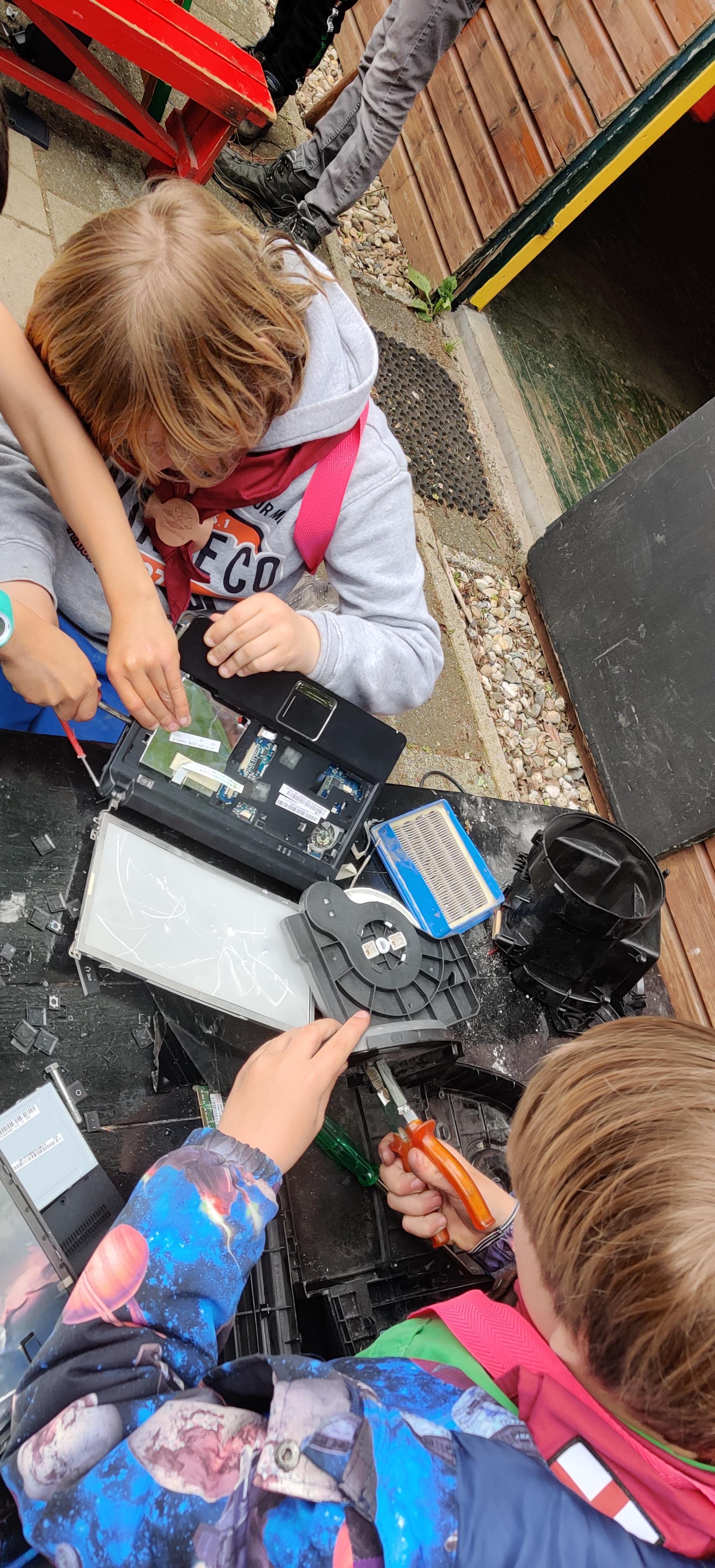 Afgelopen opkomst zijn we weer druk bezig geweest! Na het openen begonnen we met het eerste onderdeel: apparaten uit elkaar halen. De welpen mochten een aantal oude apparaten slopen, om zo te ondekken hoe een aparaat werkt, in elkaar zit en vooral: hoe kun je het slopen? Iedereen was razend enthousiast en vond het harstikke leuk om de dingen uit elkaar te halen. Daarna hebben we in drie groepjes verschillende posten gedaan. Broodjes bakken wat natuurlijk lekker was, afrikaantjes zaaien in zelfbeschilderde potjes en ook nog bamboe-stoelendans. We hadden ook 2 kijkers bij de leiding, Joost en Daan. Ze vonden het leuk om een keer mee te kijken hoe het is om bij de welpen leiding te geven. Lijkt het jou ook leuk om eens een opkomst mee te doen als leiding? Hou je ervan om uitgedaagd te worden en leuke en spannende activiteiten voor kinderen te organiseren? Kom dan gerust een keertje kijken en stuur een mailtje naar welpen@st-joris.nl!