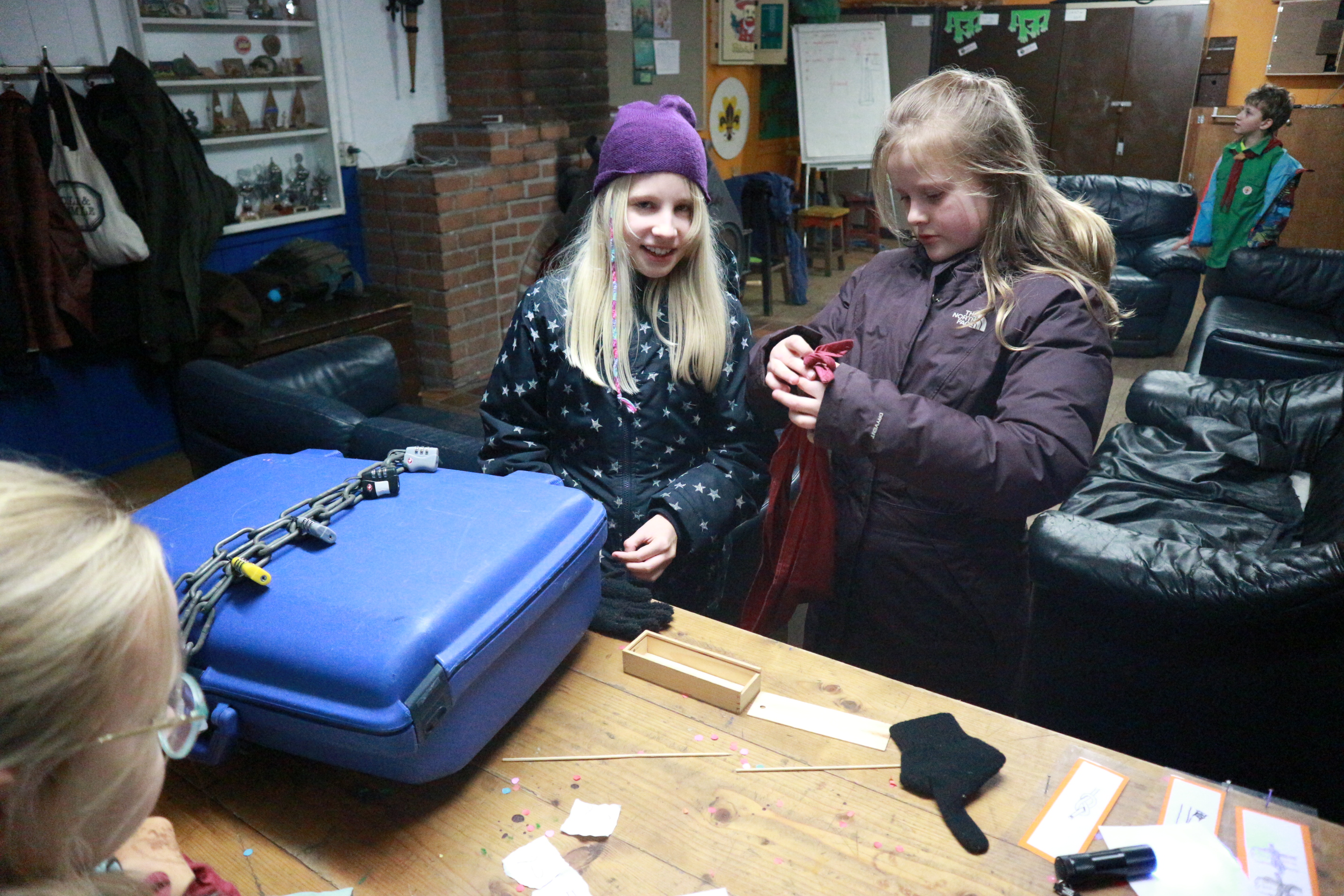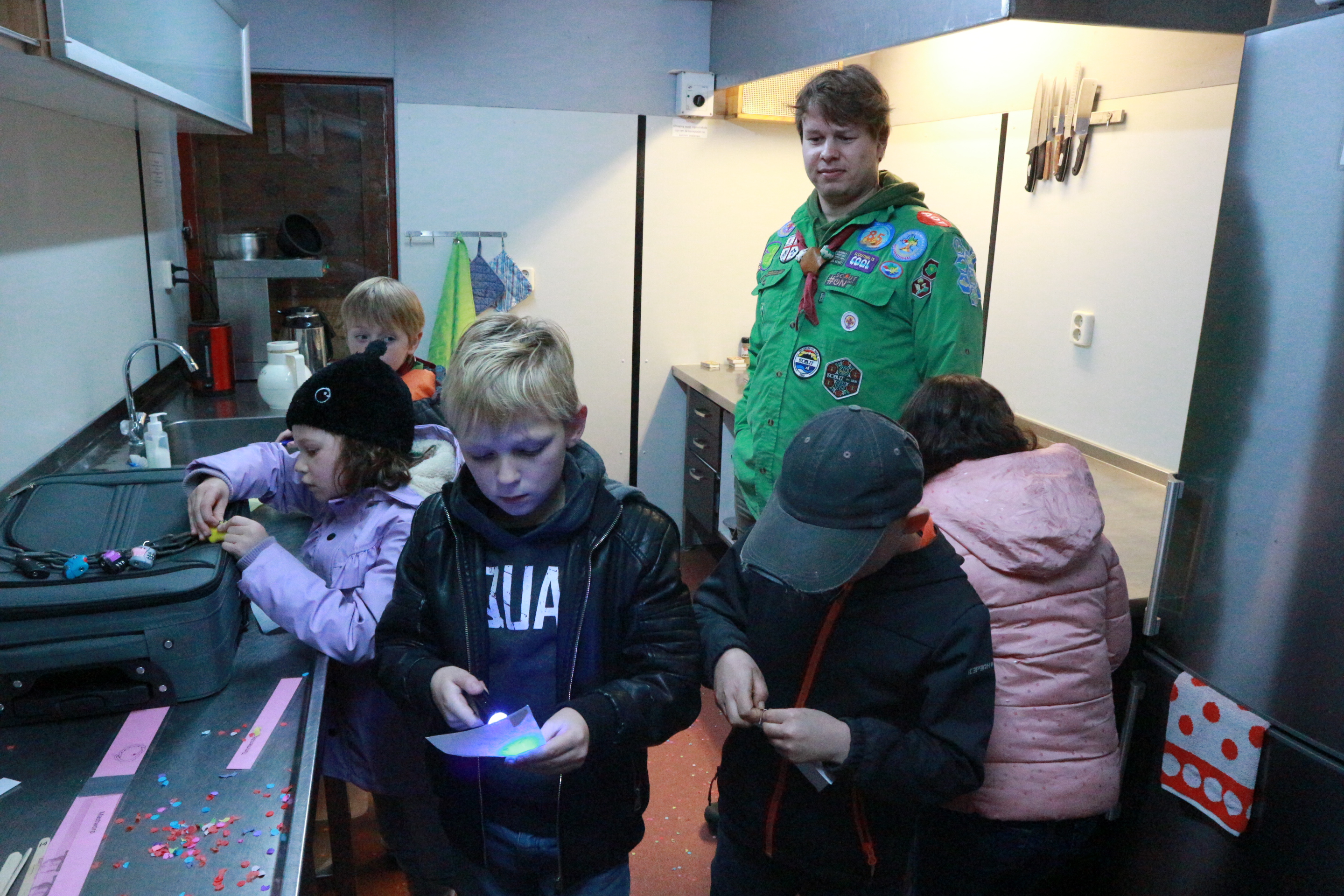 Op vrijdagavond hebben de welpen in kleine groepjes een heuse escape room. Met verschillende puzzels moesten slotjes om een koffer worden geopend, wat uiteindelijk leidde tot de grootste prijs van allemaal: een zakje Skittles!