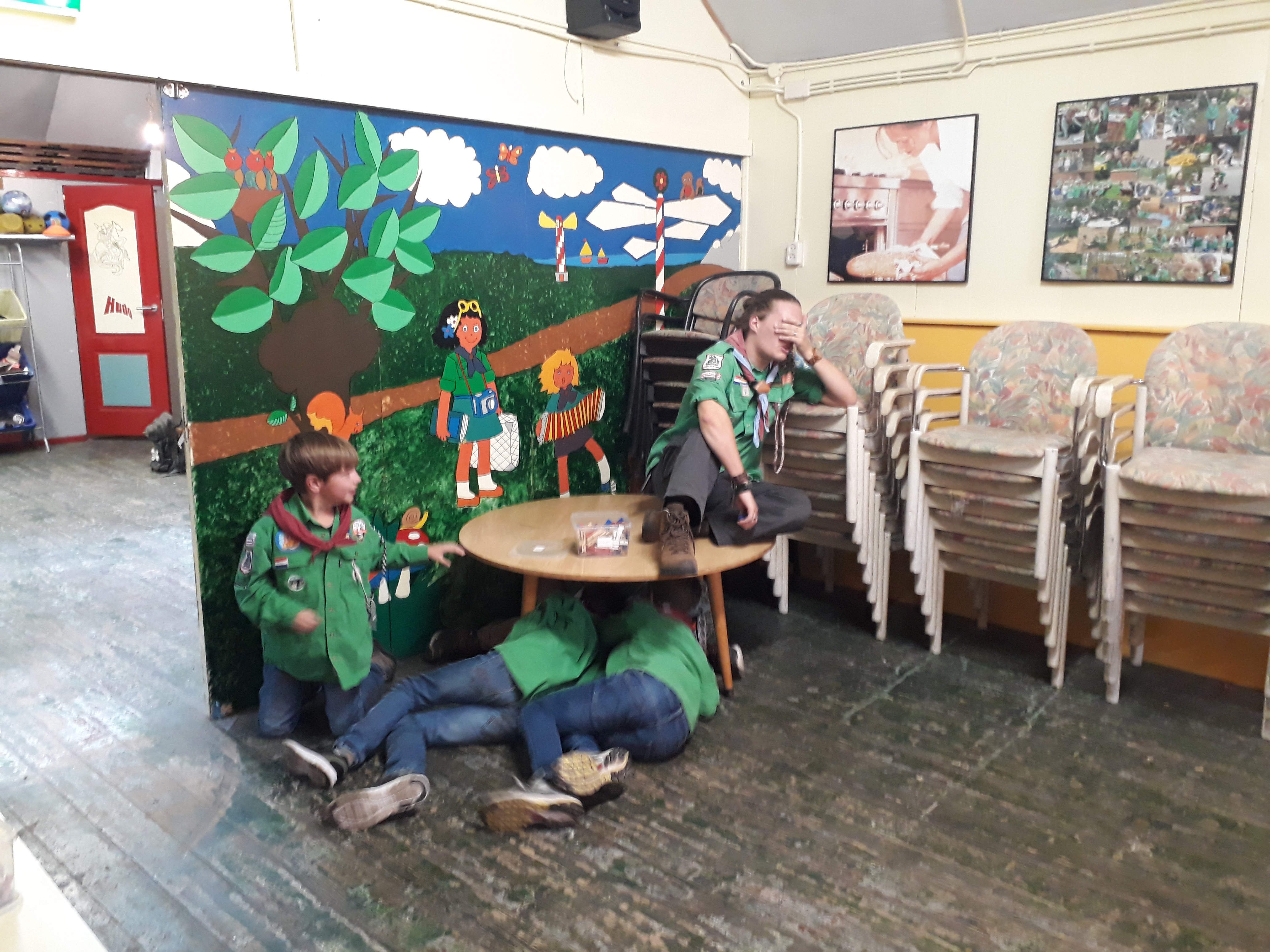 Voordat het zover was hebben we eerst een bijzonder spel annemaria koekoek gespeeld. Hierin was het de bedoeling dat de Welpen scoutingregels moesten breken als Martijn het niet zag. Want als Martijn het zag, kreeg je een strafpunt! Sommige Welpen waren hier misschien wel iets té goed in. Maar het is nu voor iedereen weer duidelijk welke afspraken we in en rond de blokhut met elkaar hebben. Ook hebben de Welpen geoefend met het maken van vuur. Dat was iets lastiger, door de beperkte ruimte. Rond de blokhut was er namelijk op plekken nieuw gras gezaaid, waar we nog niet overheen mochten lopen. Waar iedereen wél overheen mocht was de nieuwe touwbrug die Niels met de klusgroep heeft gemaakt. Deze viel net zo in de smaak als de broodjes met hagelslag. Al met al was het een mooie dag.