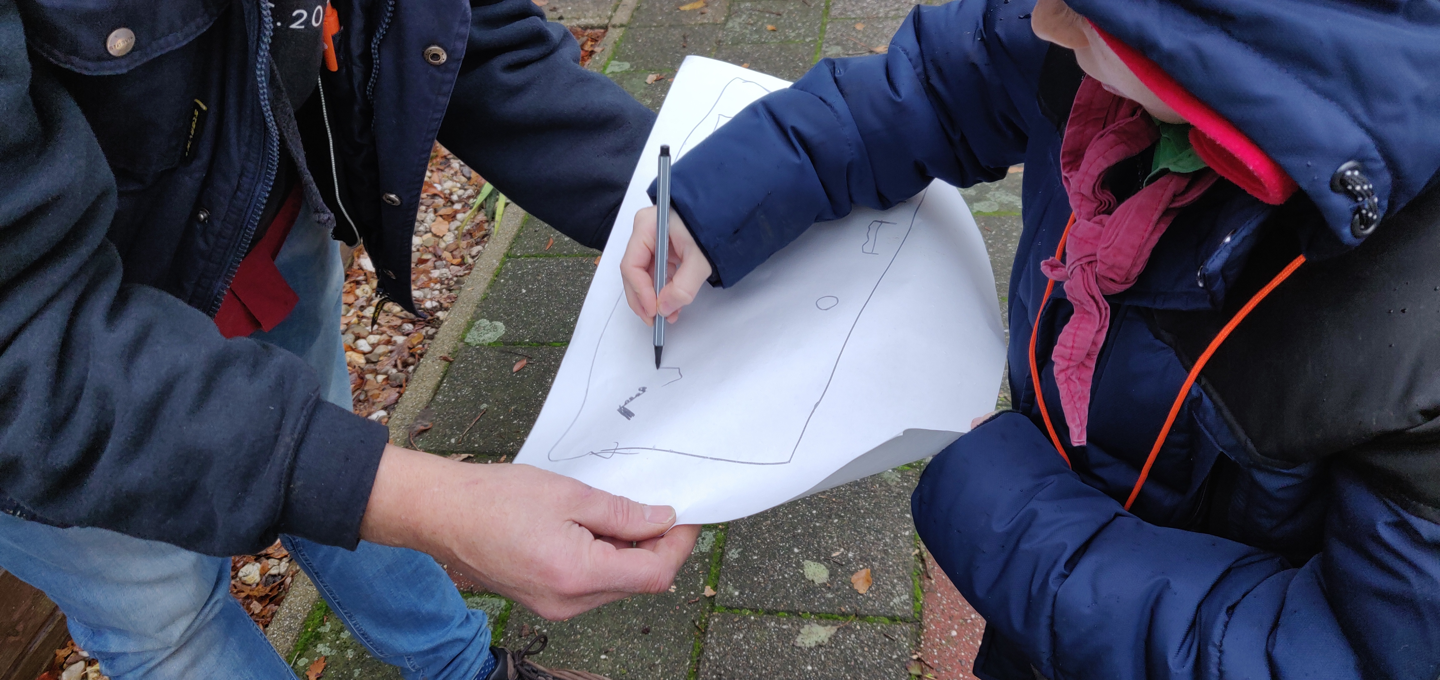 Gewapend met deze kennis was het tijd om voor elkaar een goede kaart te maken. Over het terrein lagen opvallende voorwerpen verstopt. Deze moesten zo in kaart worden gebracht, dat een andere groep welpen de voorwerpen met behulp van die kaarten weer op de correcte plek zou kunnen leggen. Dat bleek lastiger dan gedacht, want dat je op een kaart een hoepel in een boom schetst wil niet zeggen dat de volgende groep de goede boom uitzoekt.