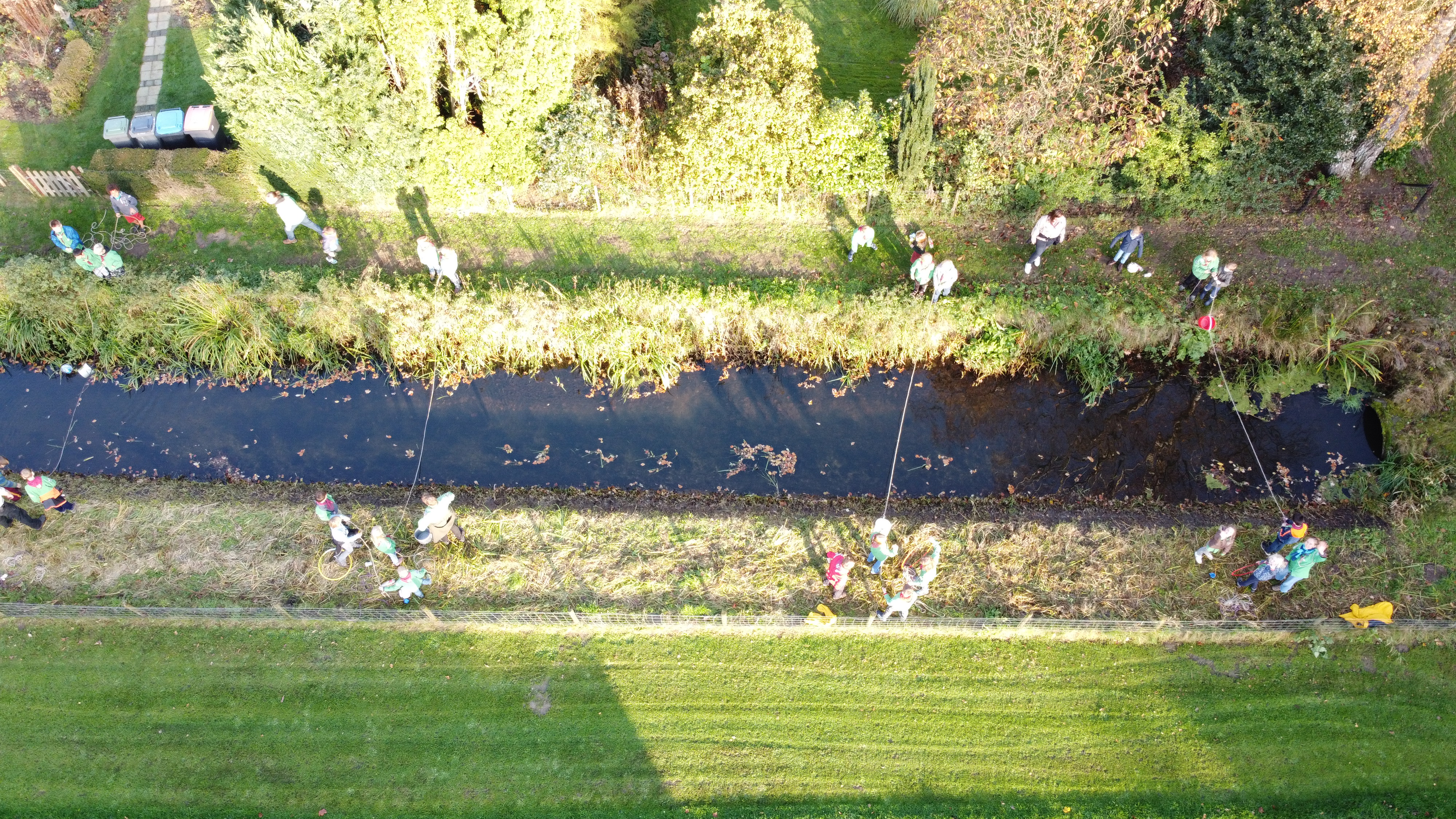 De welpen hebben zaterdag geoefend met het maken van knopen. Ook kregen ze de bijzondere opdracht om spullen over de sloot te brengen met behulp van een emmer en wat touwen.