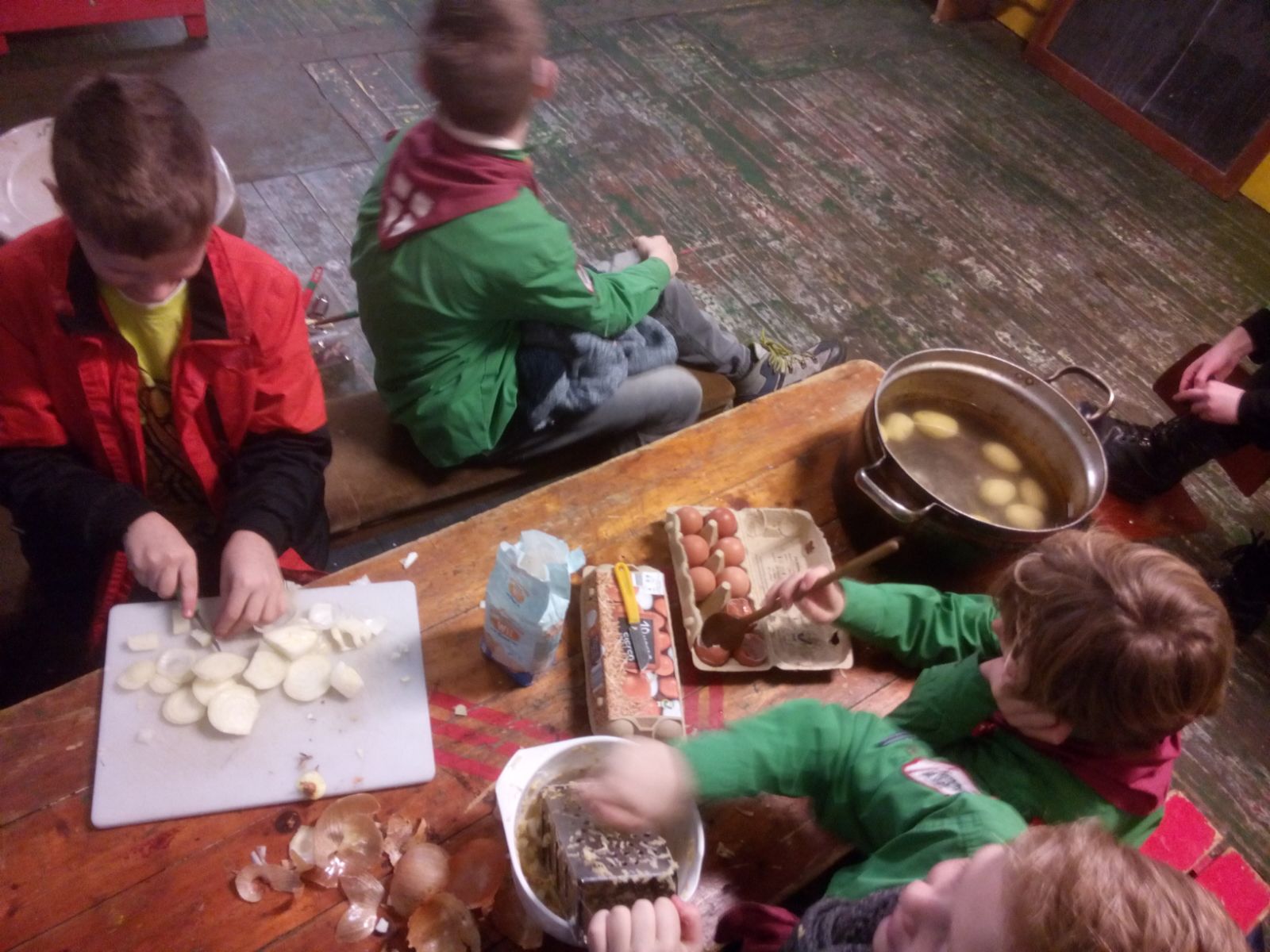 Zoals we elke zaterdag doen, zijn we 20 januari begonnen met de opening. Daarna zijn we gelijk begonnen met koken. De welpen zijn verdeeld in drie groepjes, in die groepjes gingen ze in drie rondes koken. In de drie rondes hebben de welpen aardappelpannenkoekjes, popcorn op houtvuur en appelflappen gemaakt. Helaas is niet alles helemaal gelukt... Eén portie popcorn is namelijk een beetje zwart geworden. De welpen die tijd over hadden mochten natuurlijk lekker buiten spelen.