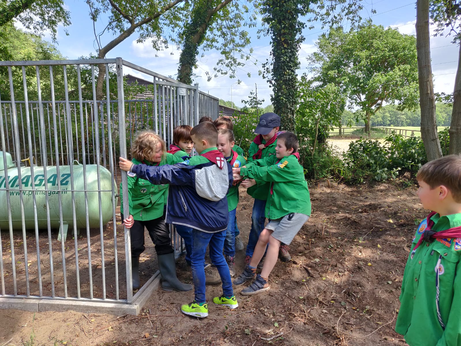 We begonnen met een potje Standbeeldentikkertje op verzoek van een van de welpen. Ondertussen had Niels een vlag verstopt in de buurt van de blokhut, en konden we na het tikkertje Bloedvlag spelen... en meteen ook zien wat de klusgroep allemaal heeft verbouwd. Het is nog niet af, maar we kunnen al wel zien dat het erg mooi gaat worden! De welpen bedachten tijdens Bloedvlag een creatieve manier om samen te winnen door met elkaar de vlag in het gashok te krijgen. Hierna had iedereen dorst, en was het hoog tijd voor een pauze.