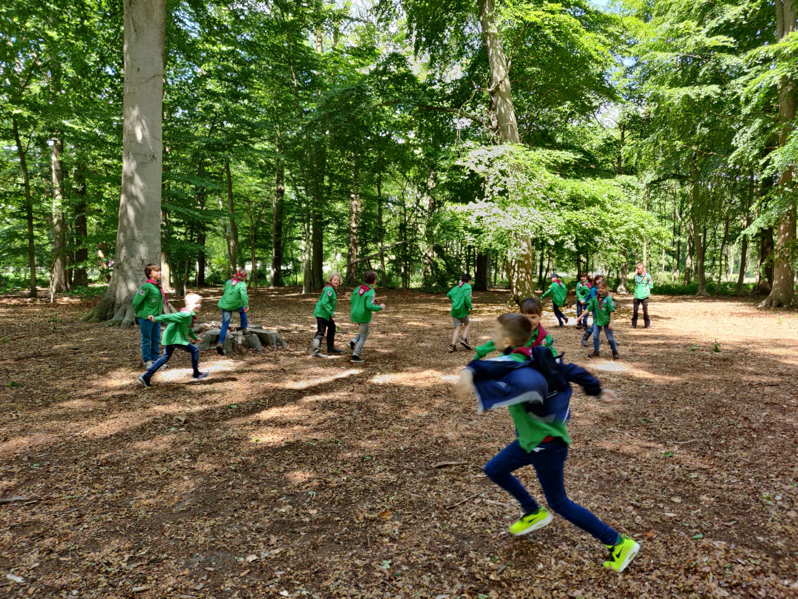 Vervolgens hebben we in twee groepen hutten gebouwd als basis voor levend stratego. De vlag werd telkens vrij snel veroverd, dus konden we lekker veel potjes spelen! Na drie potjes was het tijd om weer te gaan sluiten.