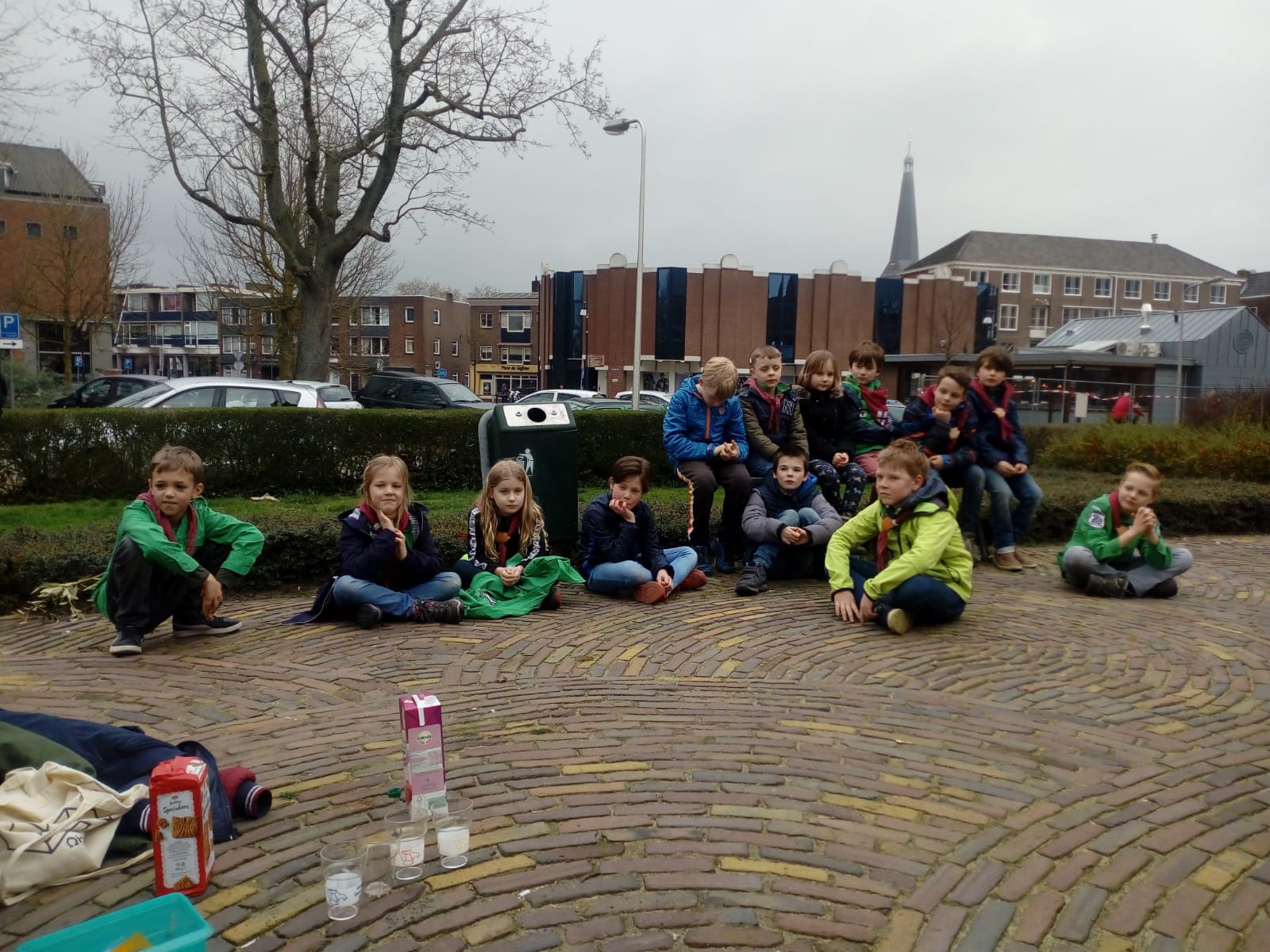 Deze zaterdag was weer net wat anders dan normaal, hij was namelijk in de stad! Om half 2 verzamelden we met z'n allen bij het parkje naast de bibliotheek. Er was geen vlag dus moesten we doen alsof bij het openen. Een aantal welpen hadden al geraden wat we gingen doen dus zijn we snel begonnen.