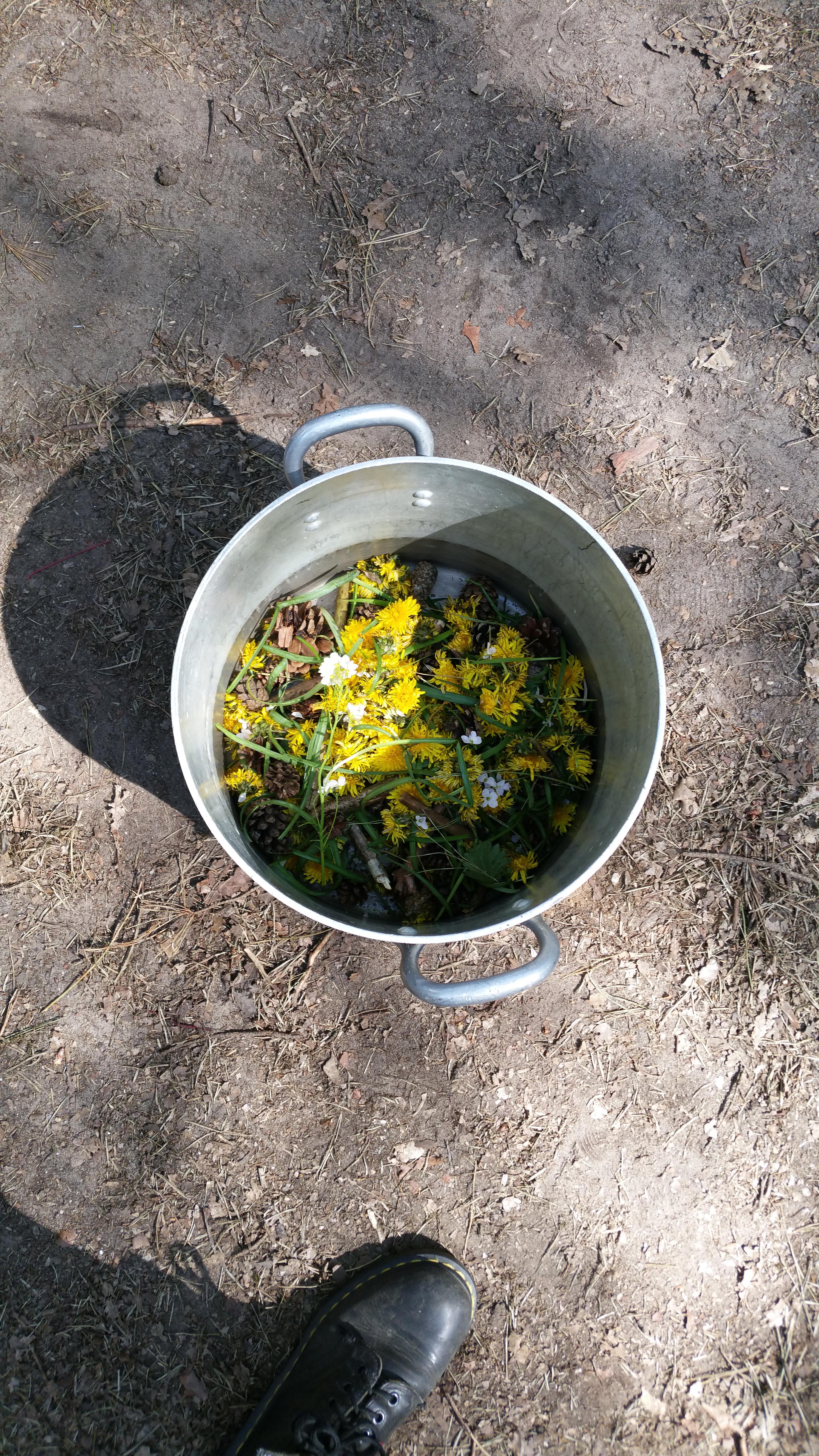 Nadat alle ingrediënten gevonden waren moest dit 7 minuten gekookt worden in een pan met water. Na de 7 minuten moest iedereen nog een handje bosgrond bij het medicijn doen. Vervolgens moest er 5 keer met de klok mee en 3 keer tegen de klok in geroerd worden. Terwijl dit gedaan werd moesten de volgende woorden gesproken worden: purkagia drakoon, exafanidzontai gia panta apo autè gè.