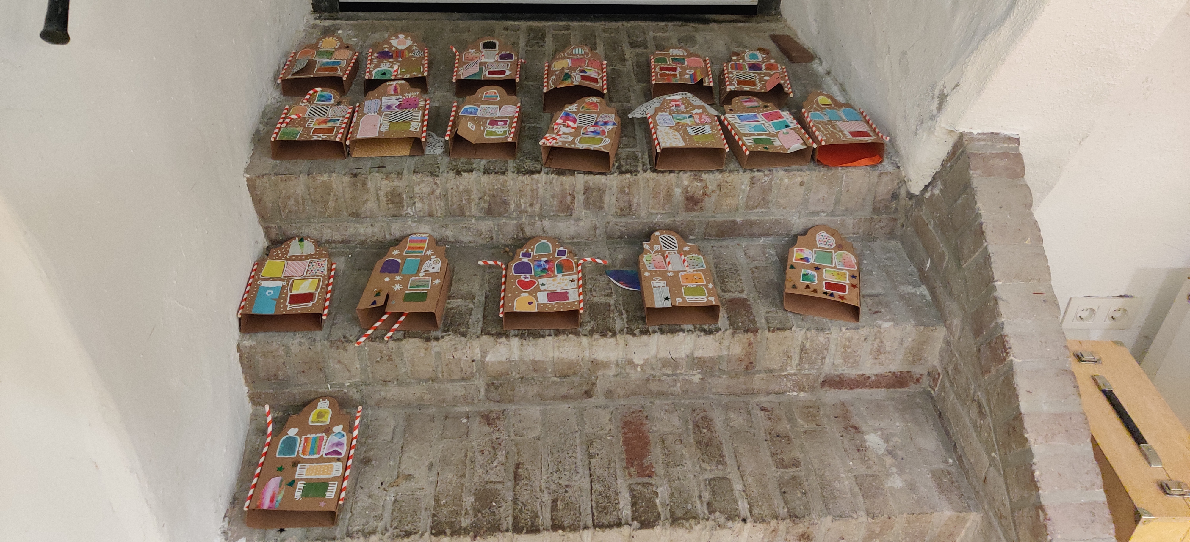 Omdat de groep net iets te groot was om in één keer los te laten in het museum, werd deze in twee gedeeld. De tweede helft bestond uit het knutselen van een kerstversiering voor thuis. In de vorm van een oud herenhuis van onze Hanzestad werd een kunstwerkje gemaakt dat samen met een lampje een mooi tafereel moet geven. Hopelijk heeft iedereen die thuis naast de kerstboom staan.