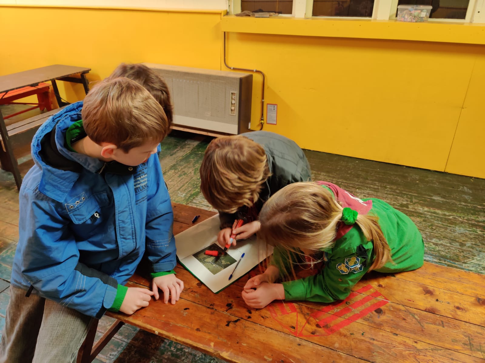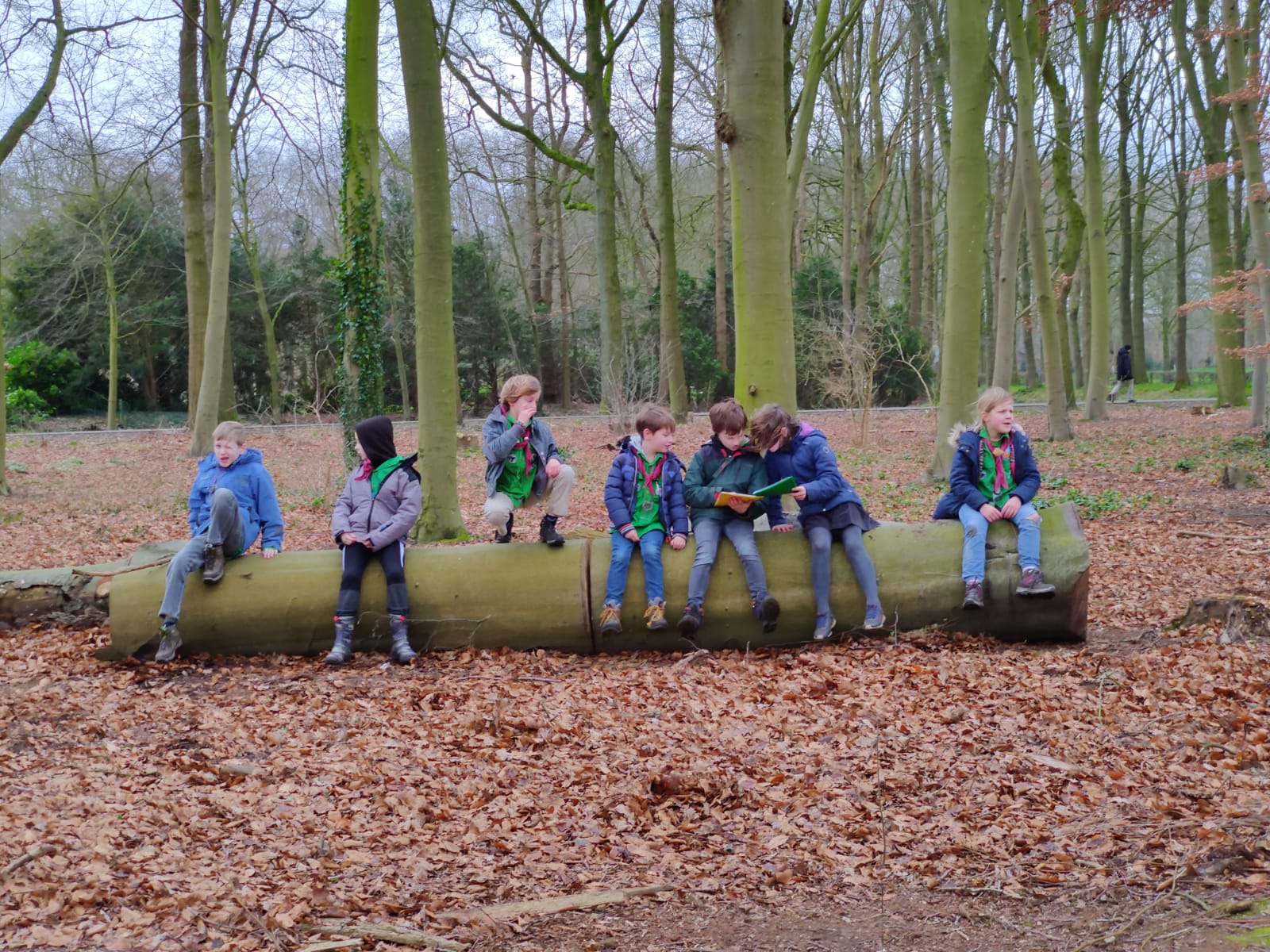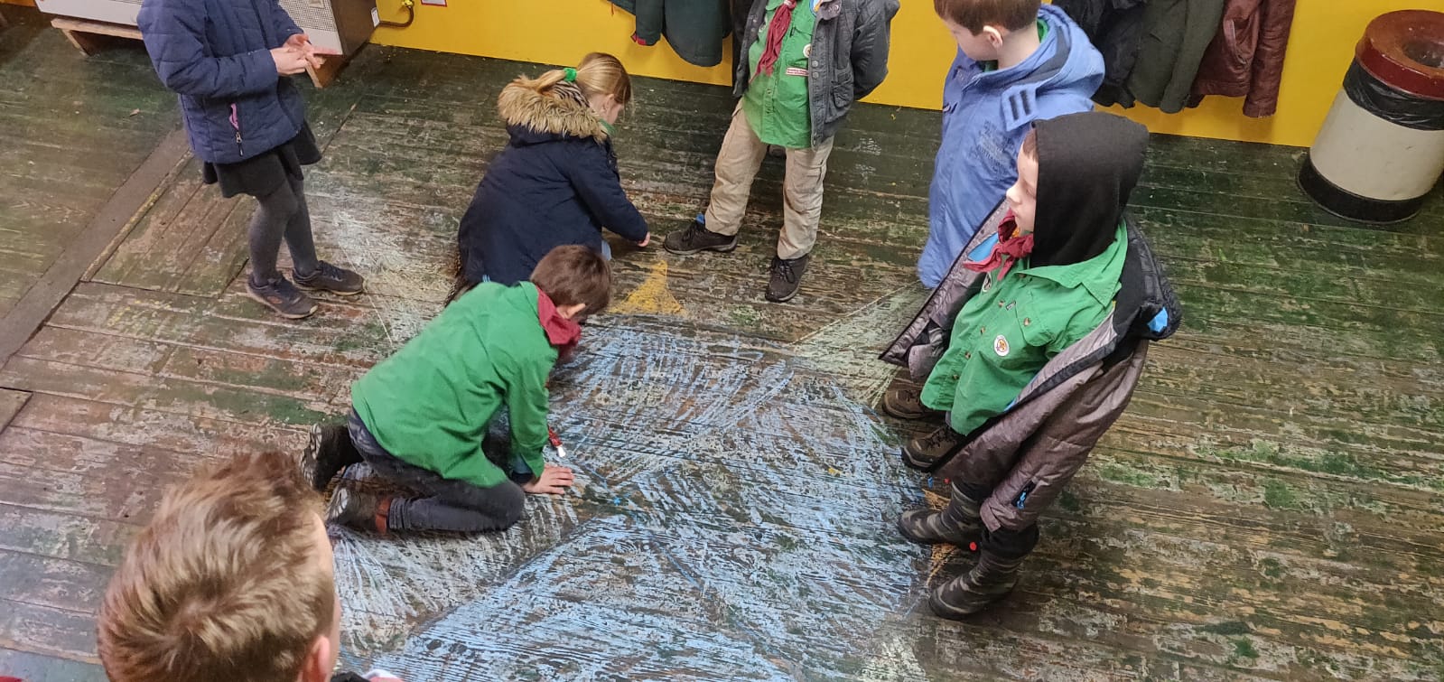 Eerst begonnen de welpen met het krijten van noord, zuid, oost en west op de grond. Daarna moesten ze een tochtje lopen met kompas. Op papier kregen ze een aantal kompas richtingen. Door het schieten van deze richting moesten ze de route bepalen. Als herkenning waren er foto’s gemaakt op het punt waar ze kompas richting moesten schieten. Halverwege de tocht lekker pauze houden op een boomstam en daarna weer verder. Na de tocht moesten ze de gelopen route teken op een “Google maps“ kaart. Dat ging heel goed. Daarna nog een even touwtje trekken, de leiding tegen de welpen. Als laatste kregen ze, omdat ze de tocht zo goed gelopen hadden, een kompas fluitje.