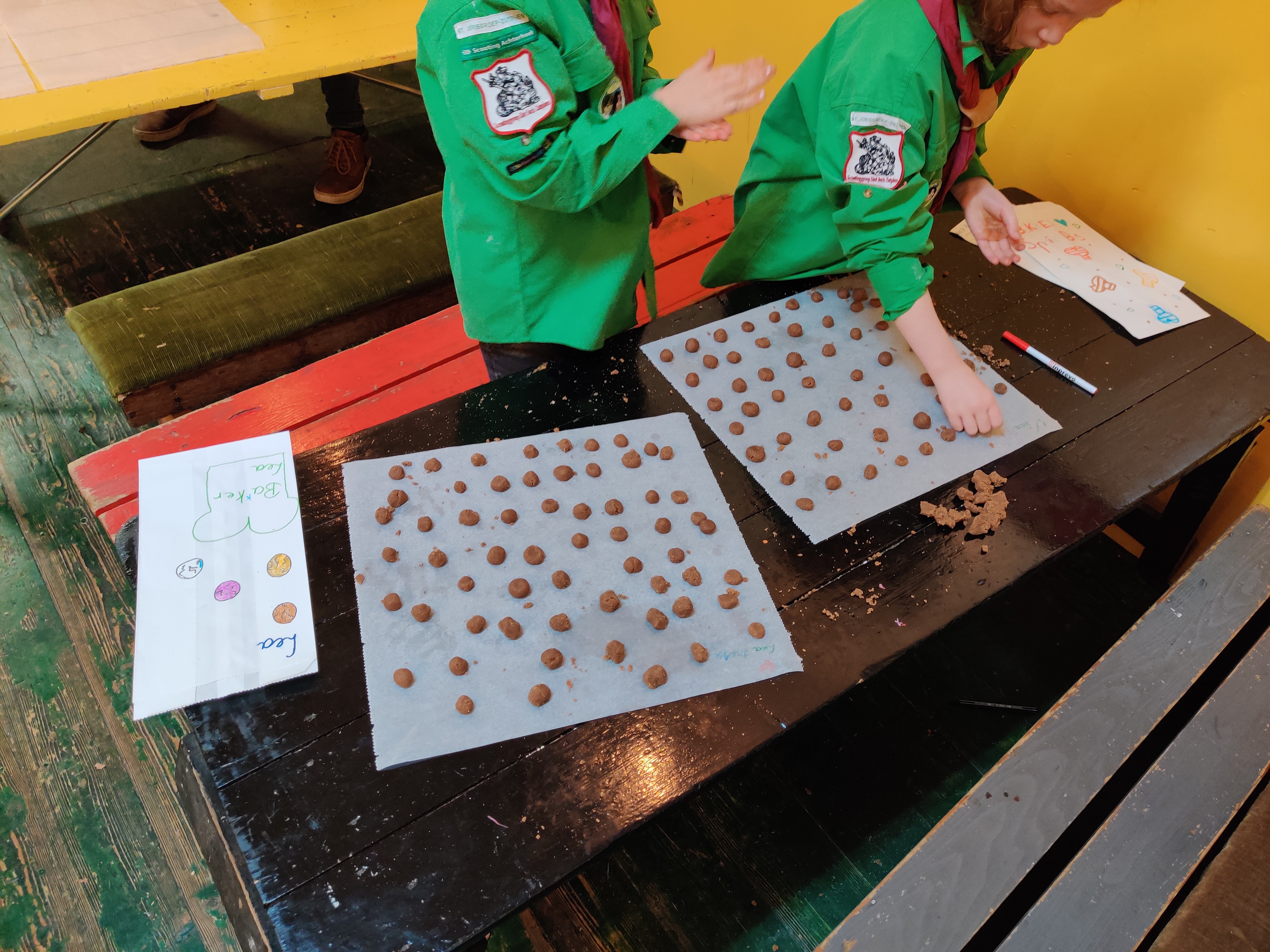 Deze week stond de opkomst natuurlijk in thema van Sinterklaas en pakjesavond. En wat is er nou leuker dan zelf pepernoten bakken en ze in een versierd zakje doen? De welpen hebben zelf gewogen en gemeten, gekneed en gerold tot ze een goede deeg kregen. Daarna hebben ze zoveel mogelijk pepernoten gemaakt van hun deeg, maar niet alleen voor zichzelf. Omdat een aantal welpen helaas niet bij de opkomst konden zijn, hebben de welpen extra zakjes en pepernoten gemaakt deze zijn in de avond nog langsgebracht door de leiding.