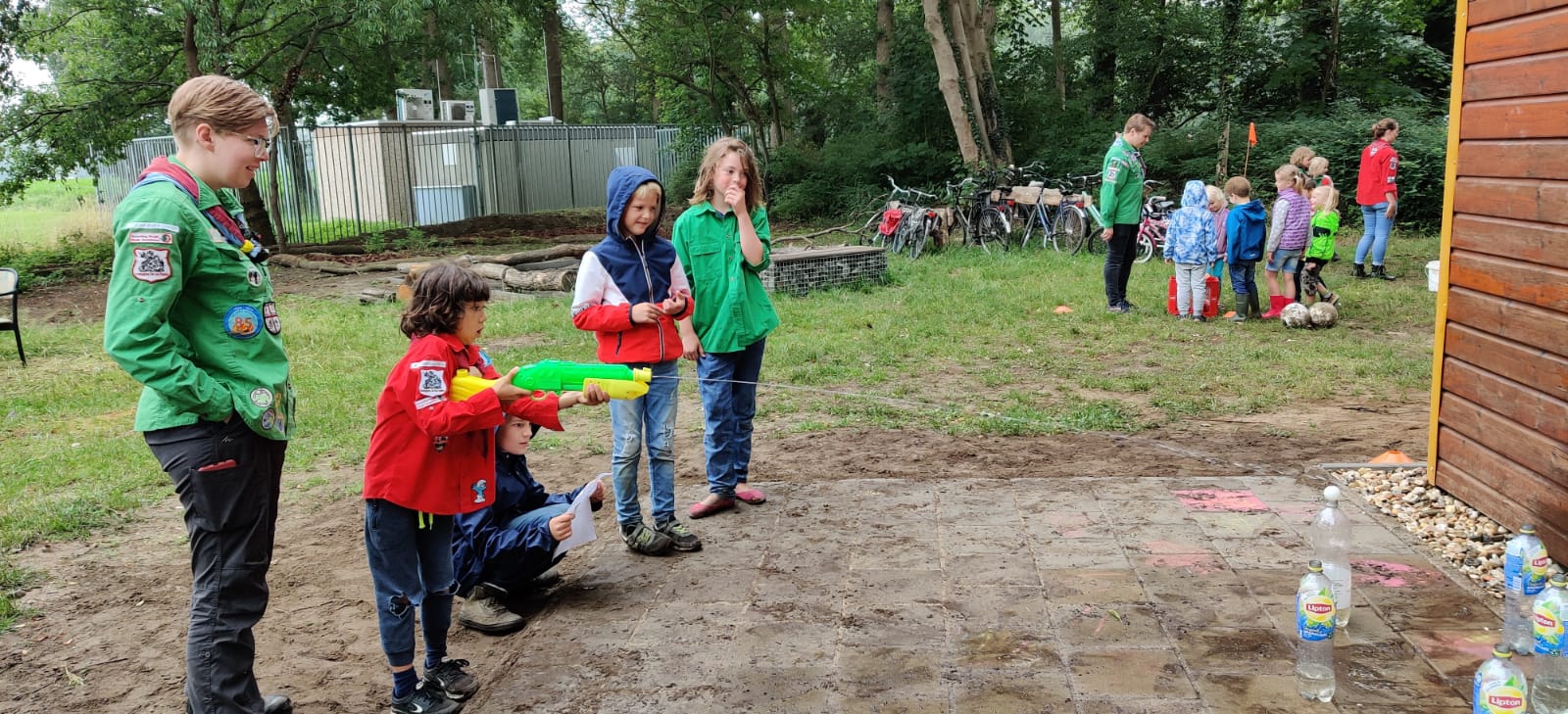 Er was een postenspel uitgezet met 8 spelletjes: een waterquiz, pingpongbal schieten, gatenbuis vullen met water, estafette, blik gooien, touwtje springen, flessen voetbal en kurken doorgeven. Sommige spellen hadden water en sommigen niet.