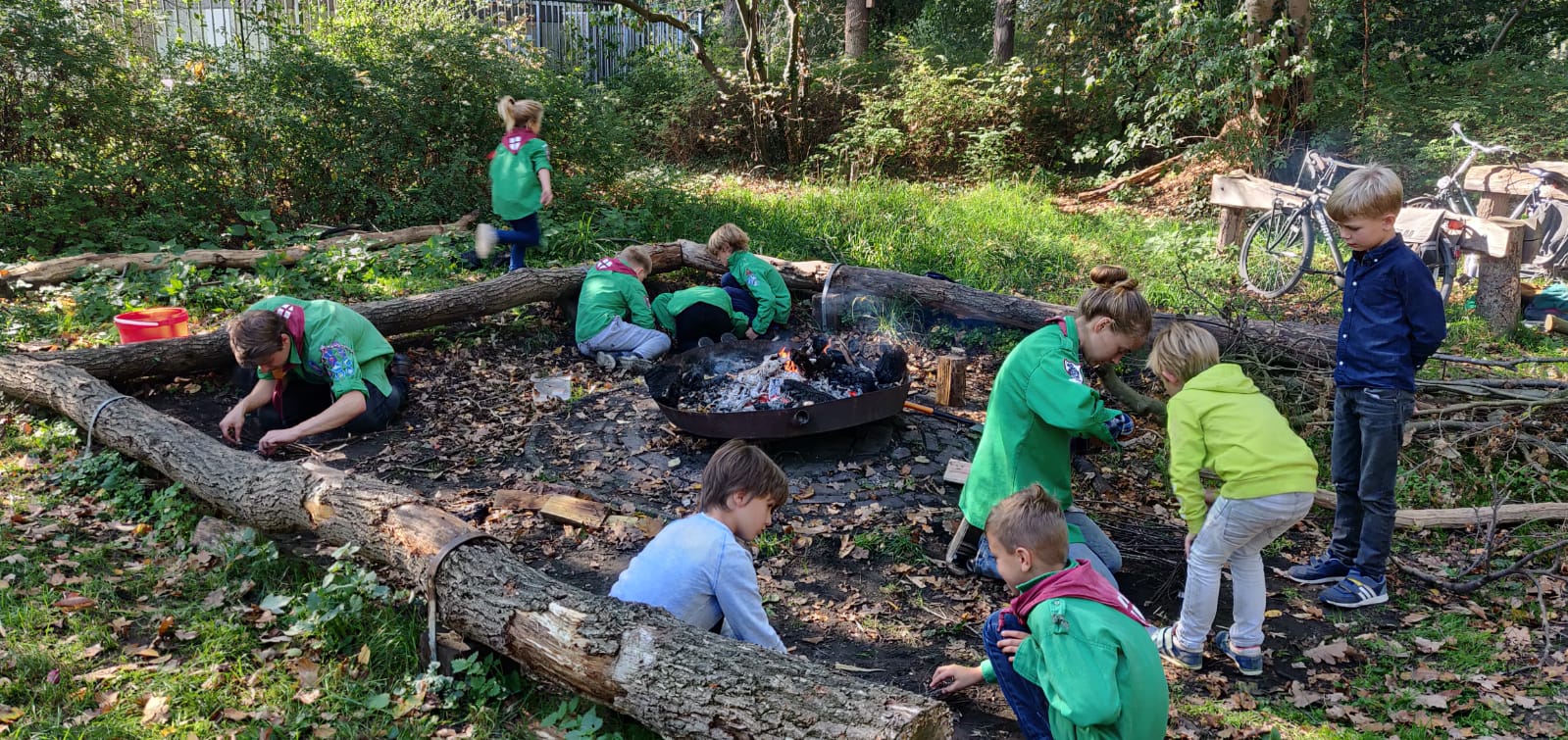 Deze zaterdag waren we met iets minder kinderen dan normaal, wat eigenlijk perfect was voor de opkomst, namelijk vuur maken! In twee- of drietallen maakten de welpen eerst een veilige plek voor hun vuur: de brandgang. Daarna was het belangrijk dat iedereen wist welke drie dingen er nodig zijn voor en vuurtje, dit noemen we de vuurdriehoek: brandstof, zuurstof en warmte. Na het zoeken van voldoende droog en dun brandhout kon het vuur maken eindelijk beginnen. Sommige kinderen hadden nog nooit een lucifer afgestreken, maar met wat oefenen ging het gelukkig al snel goed, en begonnen de vuurtjes te branden. Daarna wilde iedereen zijn of haar vuur zo lang mogelijk laten branden, tijdens de pauze hebben we namelijk marshmellows geroosterd, en die zijn natuurlijk het allerlekkerst van je eigen vuur!