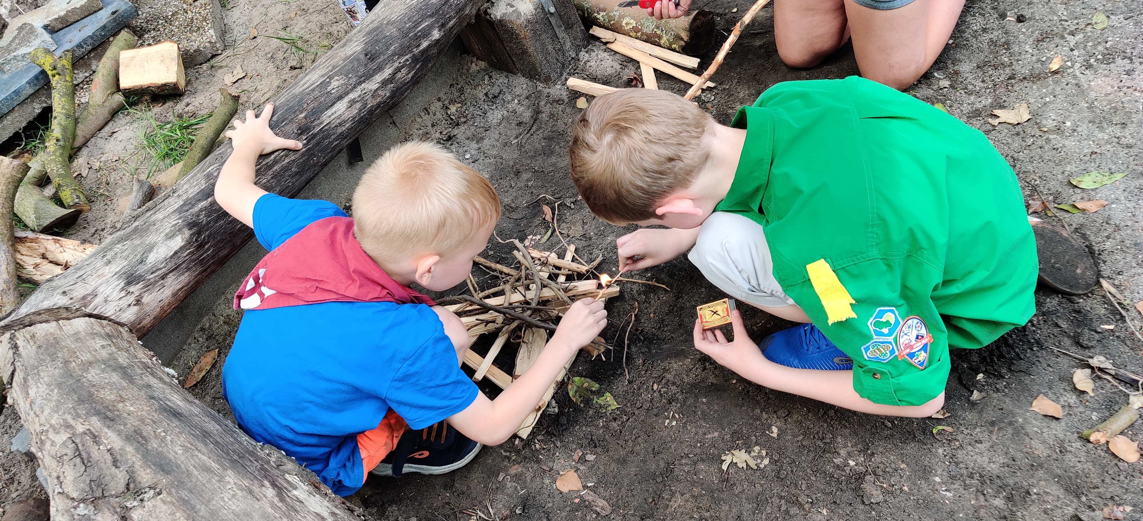 De welpen konden tijdens levend het kwartetspel lucifers, aanmaak blokjes en een zakmes verdienen. Daarna gingen we vuur maken met een handicap. Het aantal kwartetten die ze verzameld hadden konden ze inwisselen voor materialen om het vuur mee te maken. Al snel was het weer tijd om te sluiten.