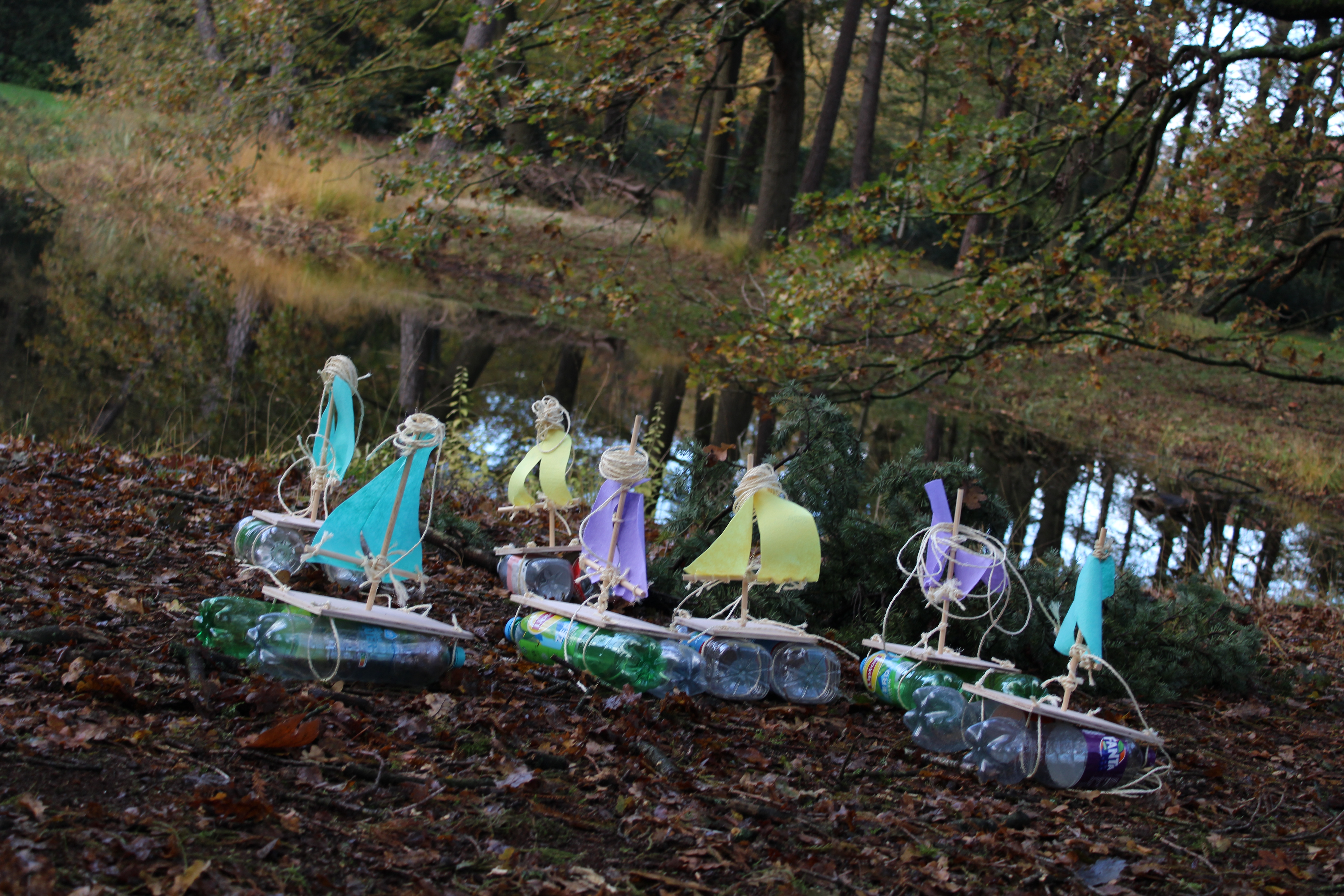 De welpen hadden ook lege frisdrankflessen meegenomen. Deze werden gebruikt om een boot van te maken aan het einde van de wandeltocht. Want wat is nou een piraat zonder boot? En natuurlijk hebben de welpen geprobeerd hun boot ook echt te laten varen. Hierbij bleek de ene boot meer zeewaardig dan de andere.