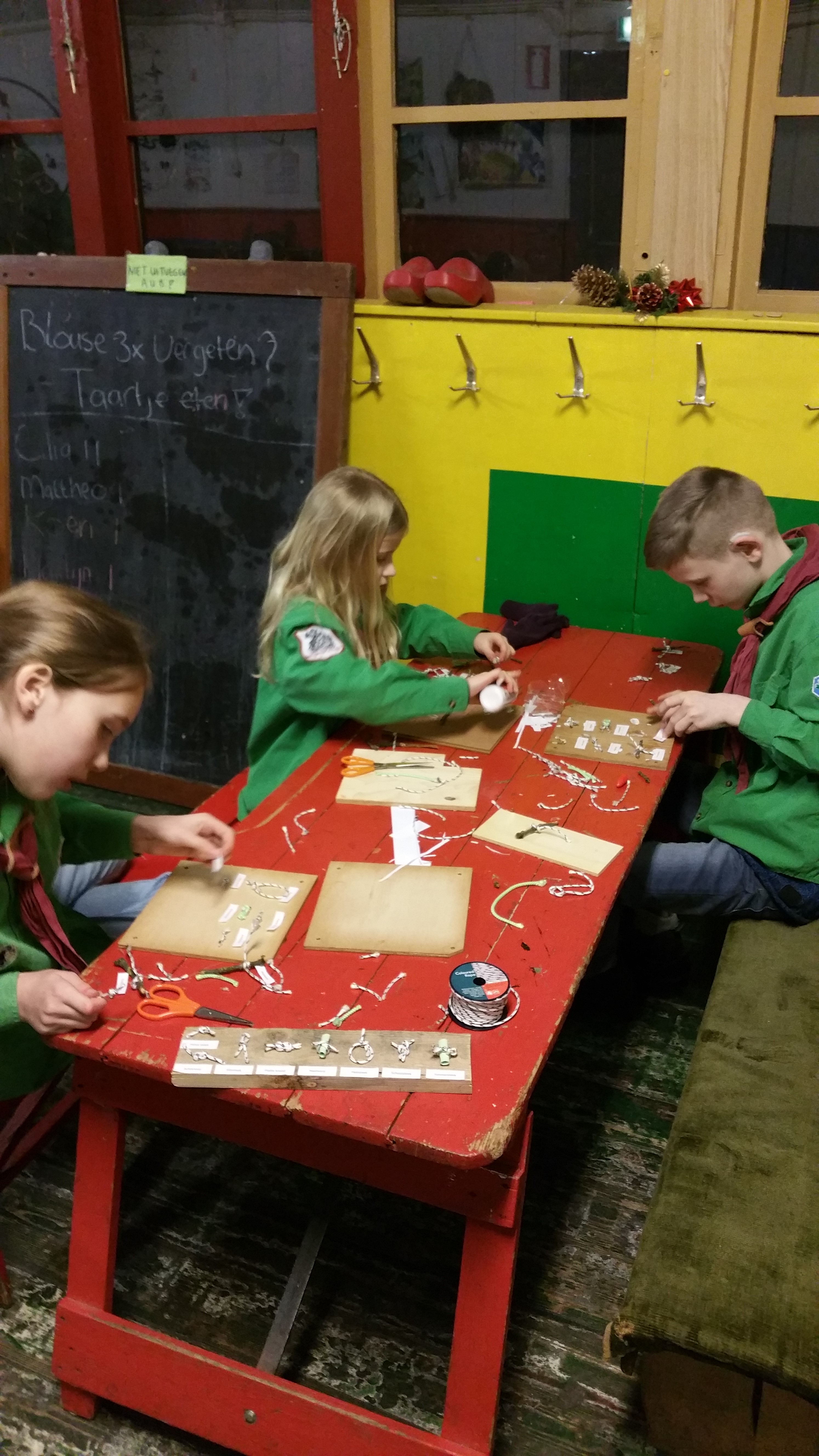 De week was alles weer zoals normaal, en was de leiding weer echt leiding. Deze week zijn we bezig geweest met knopen. Maar om te beginnen hebben we trefbal gedaan in het bos. Daarna hebben we in groepjes van drie knopenbordjes gemaakt. Sommige knopen waren heel makkelijk. Maar anderen, zoals de schootsteek, waren toch best moeilijk. Uiteindelijk heeft elke welp een mooi bordje gemaakt!