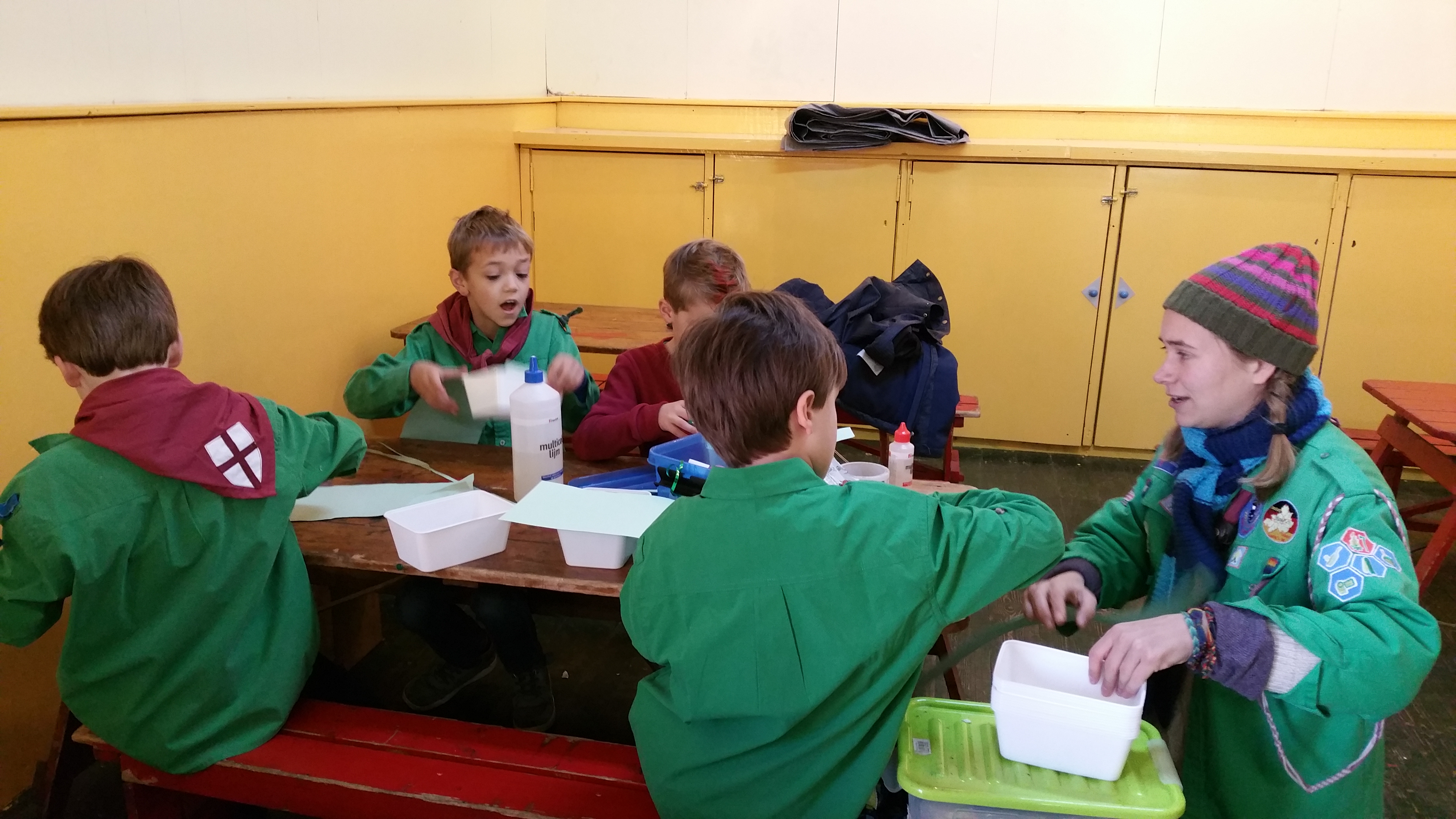 Deze zaterdag was al weer de tweede opkomst die in het teken stond van het milieu-insigne, wat betekend dat we al weer op de helft zijn! Omdat we binnen druk aan de slag zouden gaan zijn we eerst maar eens begonnen met een spelletje in het bos. Namelijk omgekeerd verstoppertje; één welp verstopt zich en de rest gaat hem zoeken, als je degene gevonden hebt ga je er heel stil bij zitten tot er nog maar één iemand aan het zoeken is. Na een aantal potjes was het tijd om echt aan het insignewerk te beginnen.